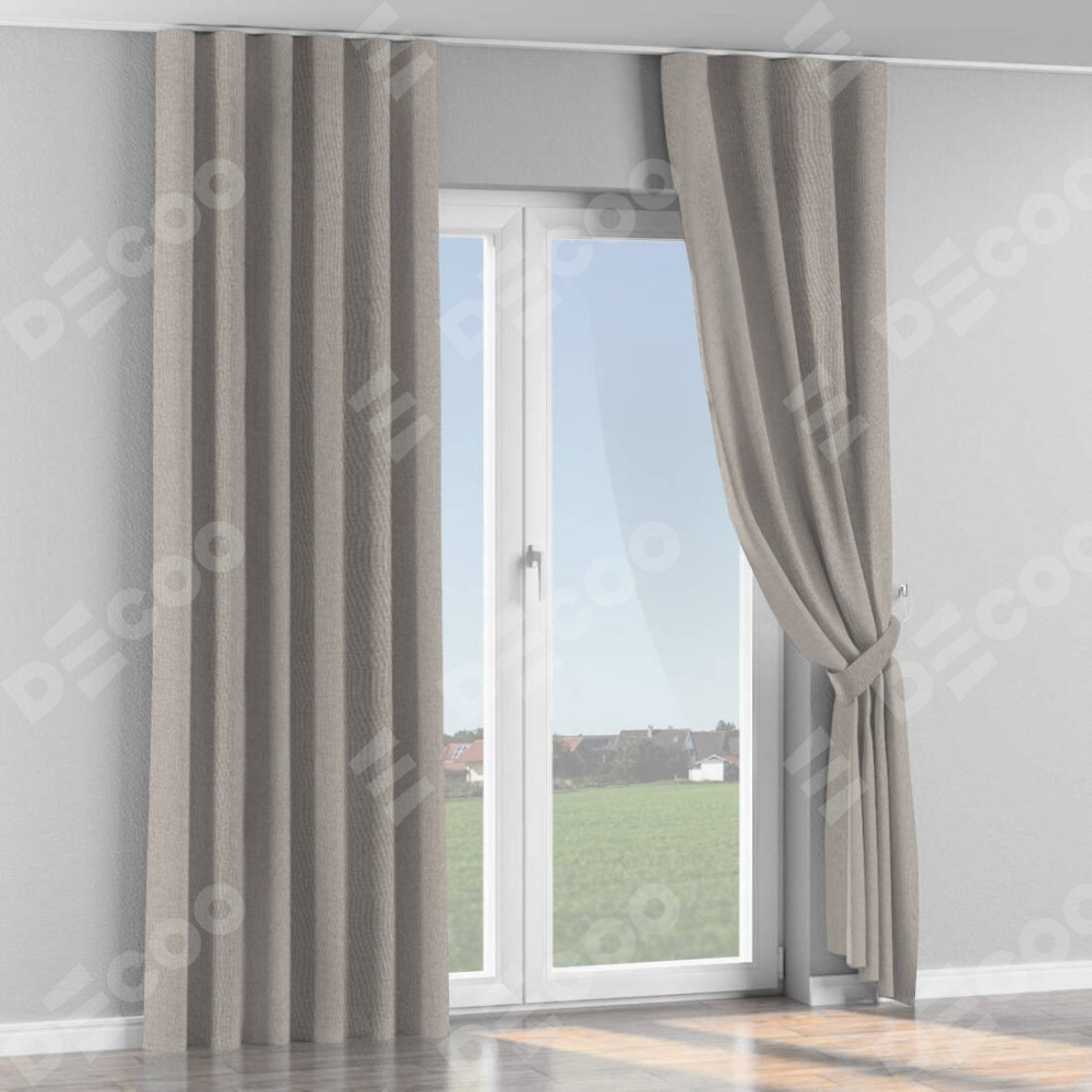 Комплект штор лён димаут серо-бежевый, на тесьме «Волна»