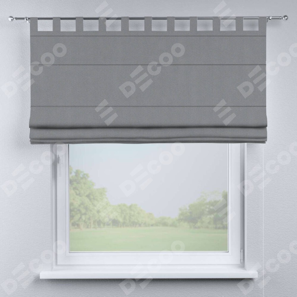 Римская штора производителя «Cortin», используется для проёма, пошита из ткани блэкаут однотонный серый, артикул ткани 146436. Данная модель пошита на петлях, комплектуется на выбор круглым карнизом и подходит для монтажа на стену. Римская штора на петлях имеет простую систему регулировки высоты, отличительным преимуществом данной модели является простой способ монтажа. Достаточно повесить ее на трубу и штора готова!