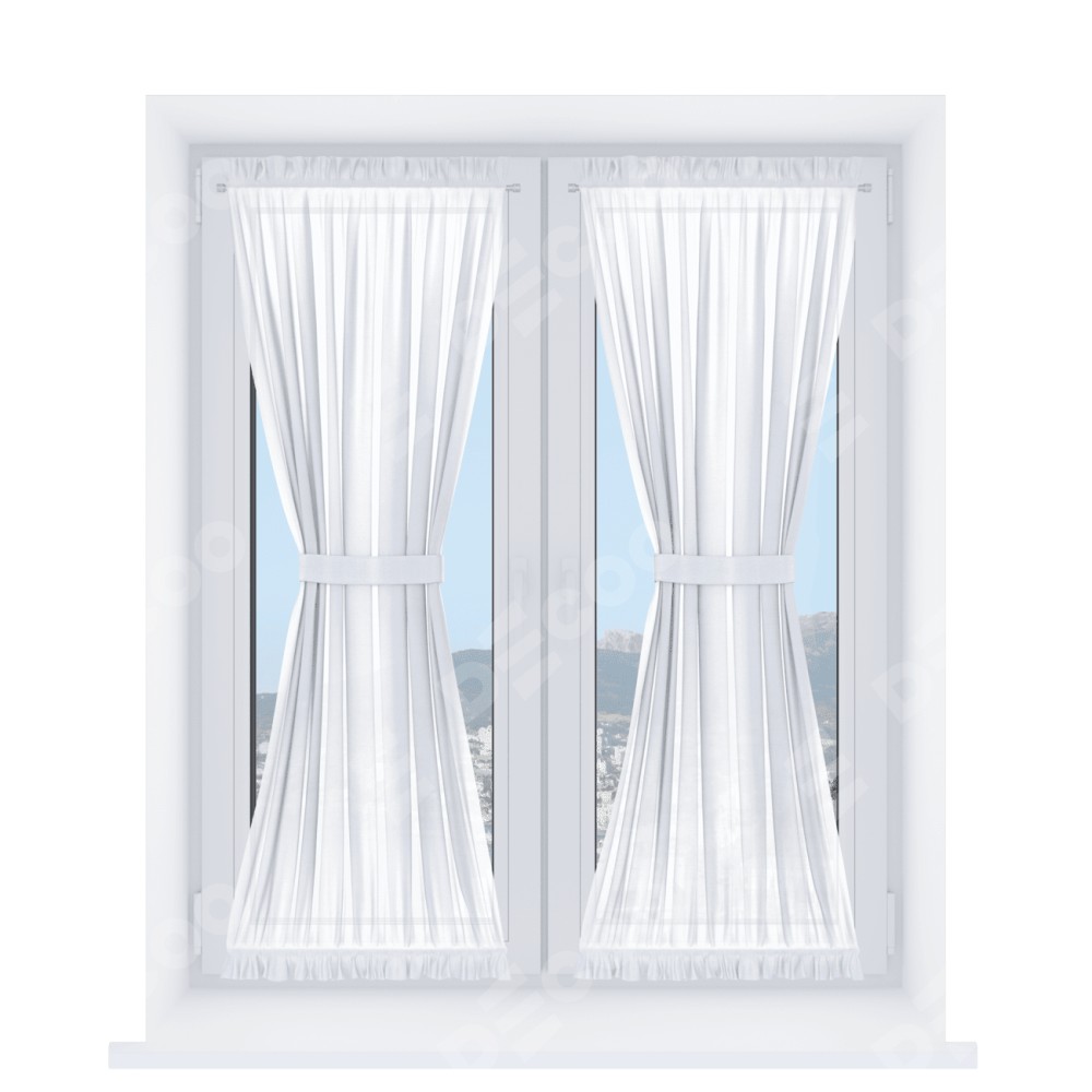 Штора «Песочные часы» производителя «Cortin», используется для створок окон и дверей, пошита из ткани лён белый, артикул ткани 53430.