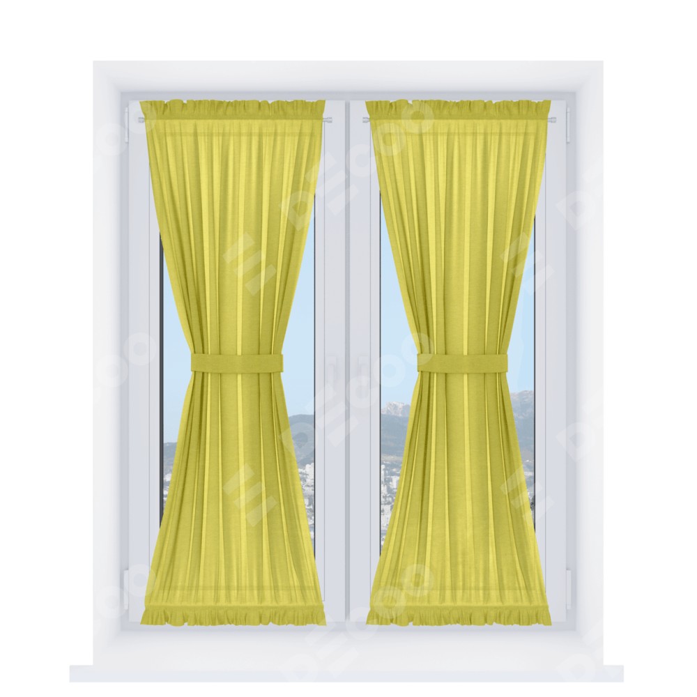 Штора «Песочные часы» производителя «Cortin», используется для створок окон и дверей, пошита из ткани лён салатовый, артикул ткани 53437.