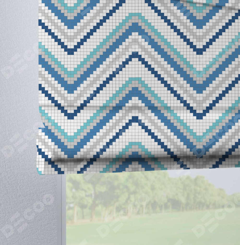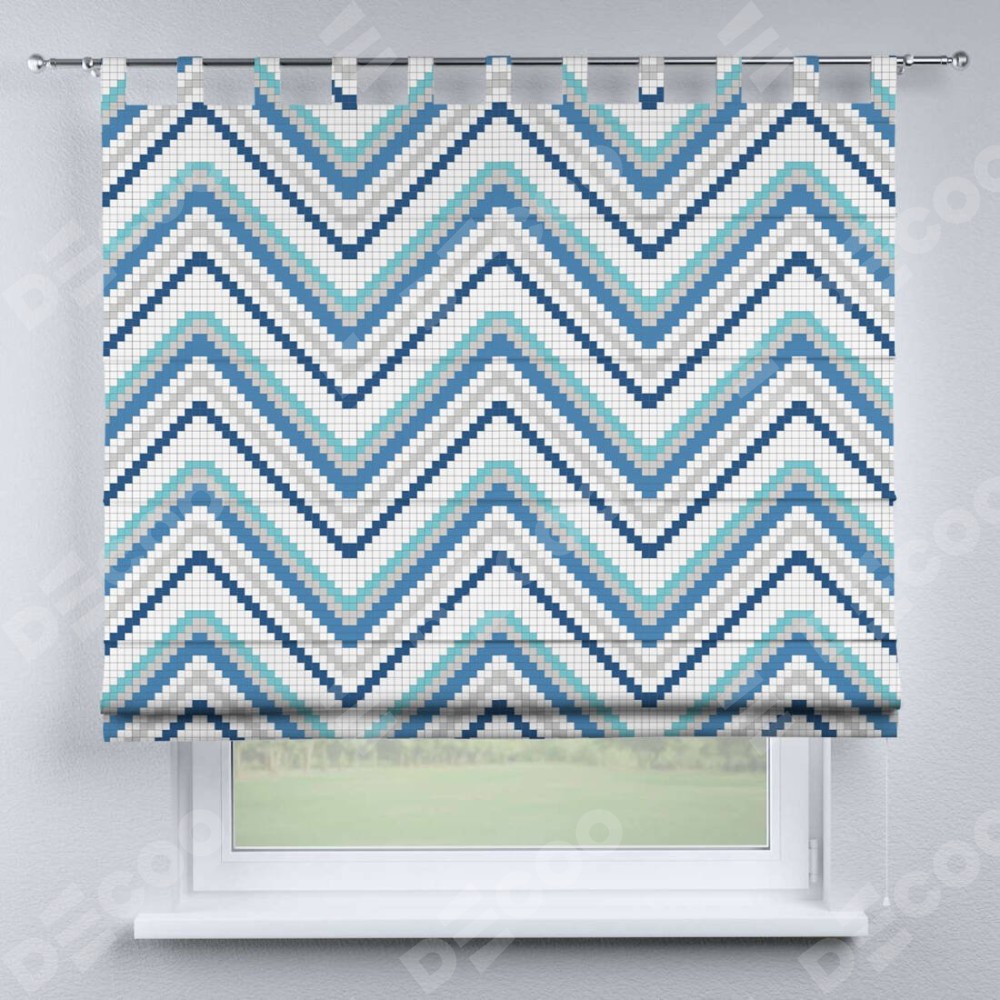 Римская штора производителя «Cortin», используется для проёма, пошита из ткани блэкаут с нанесением сублимационной печати «Геометрическая волна». Данная модель пошита на петлях, комплектуется на выбор круглым карнизом и подходит для монтажа на стену. Римская штора на петлях имеет простую систему регулировки высоты, отличительным преимуществом данной модели является простой способ монтажа. Достаточно повесить ее на трубу и штора готова!