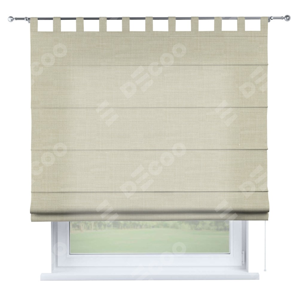 Римская штора производителя «Cortin», используется для проёма, пошита из ткани лён топлёное молоко, артикул ткани 104484. Данная модель пошита на петлях, комплектуется на выбор круглым карнизом и подходит для монтажа на стену. Римская штора на петлях имеет простую систему регулировки высоты, отличительным преимуществом данной модели является простой способ монтажа. Достаточно повесить ее на трубу и штора готова!