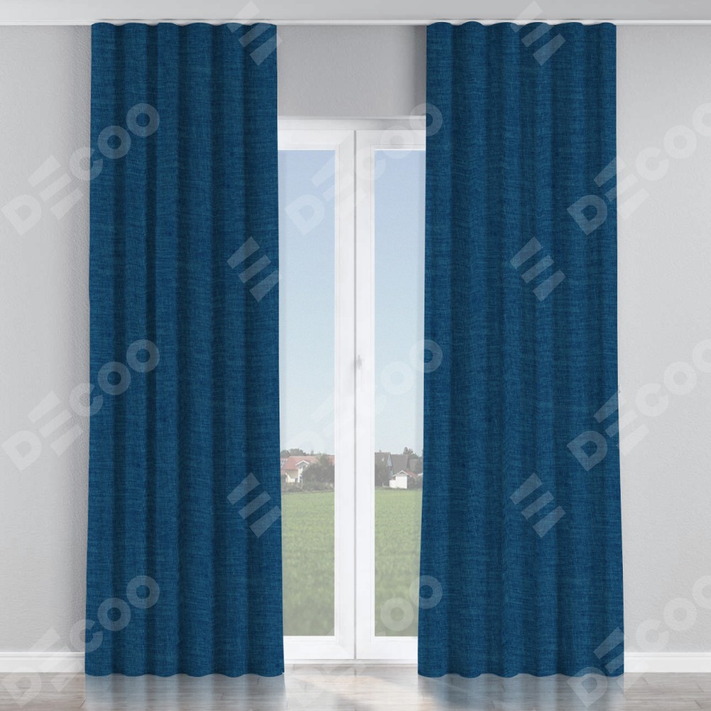 Комплект прямых штор, от производителя «Cortin», пошиты из ткани лён синий, артикул ткани 104496. С изнаночной стороны в верхней части штор пристрачивается шторная лента с декоративными складками «Волна». Для создания элегантных складок рекомендуемый коэффициент 1:2 (на 100 см. ширины проёма 200 см. ширины ткани). Важно! Ширина штор указана без учёта коэффициента сборки!