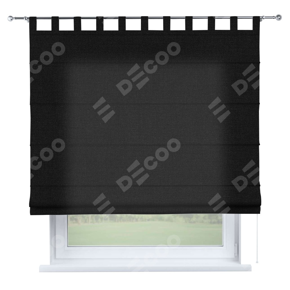 Римская штора производителя «Cortin», используется для проёма, пошита из ткани лён черный, артикул ткани 140815. Данная модель пошита на петлях, комплектуется на выбор круглым карнизом и подходит для монтажа на стену. Римская штора на петлях имеет простую систему регулировки высоты, отличительным преимуществом данной модели является простой способ монтажа. Достаточно повесить ее на трубу и штора готова!