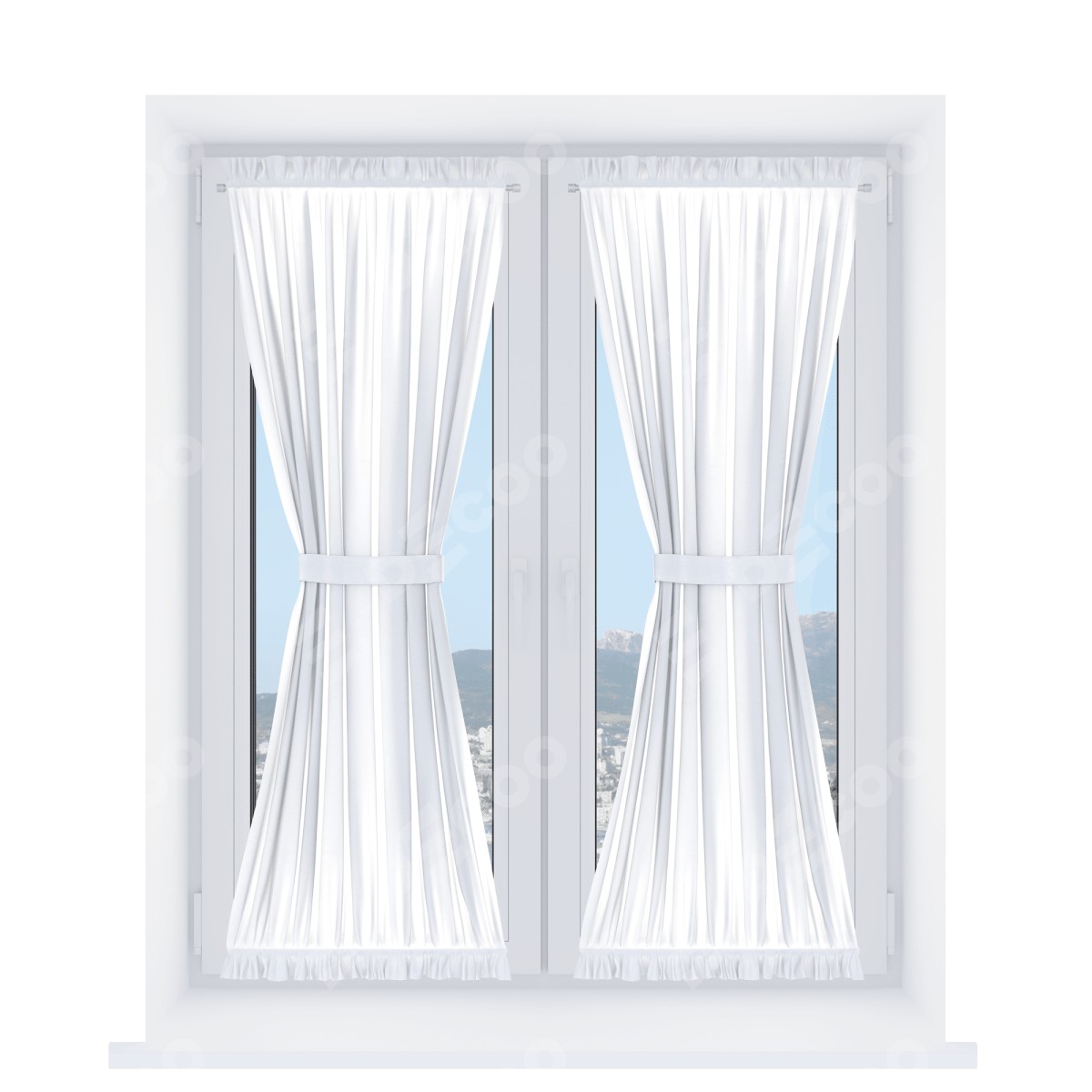 Штора «Песочные часы» производителя «Cortin», используется для створок окон и дверей, пошита из ткани вельвет дымчато-белый, артикул ткани 85535.