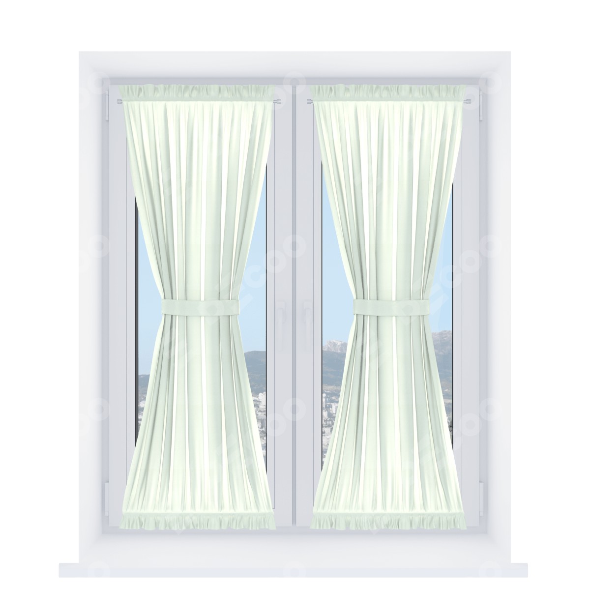 Штора «Песочные часы» производителя «Cortin», используется для створок окон и дверей, пошита из ткани вельвет кремовый, артикул ткани 85524.