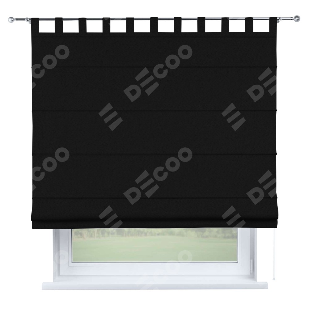 Римская штора производителя «Cortin», используется для проёма, пошита из ткани лён рустик черный, артикул ткани 145313. Данная модель пошита на петлях, комплектуется на выбор круглым карнизом и подходит для монтажа на стену. Римская штора на петлях имеет простую систему регулировки высоты, отличительным преимуществом данной модели является простой способ монтажа. Достаточно повесить ее на трубу и штора готова!