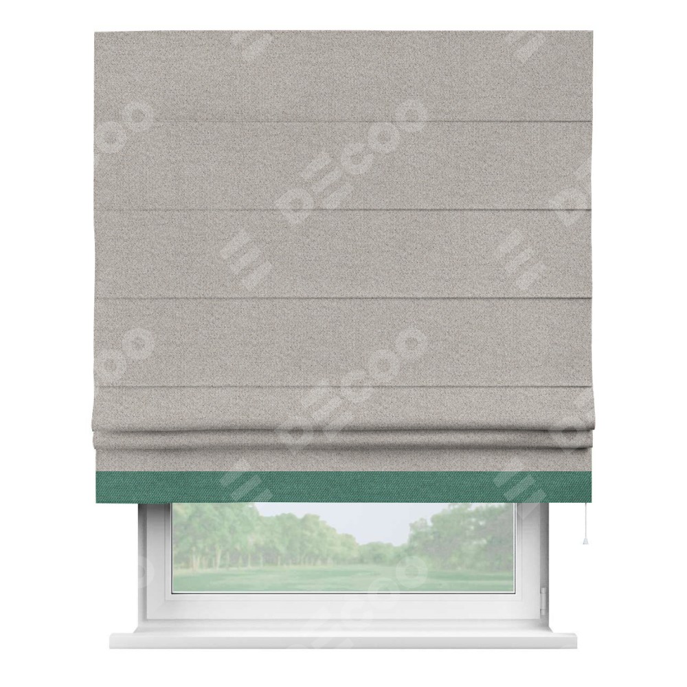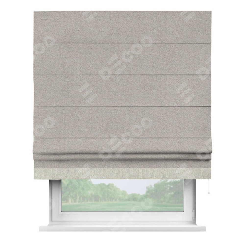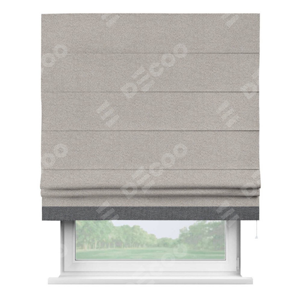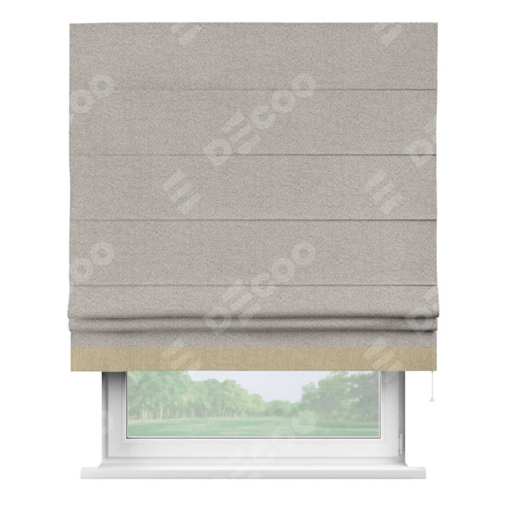 Римская штора «Кортин» для проема, лён димаут серо-бежевый с кантом Джестер