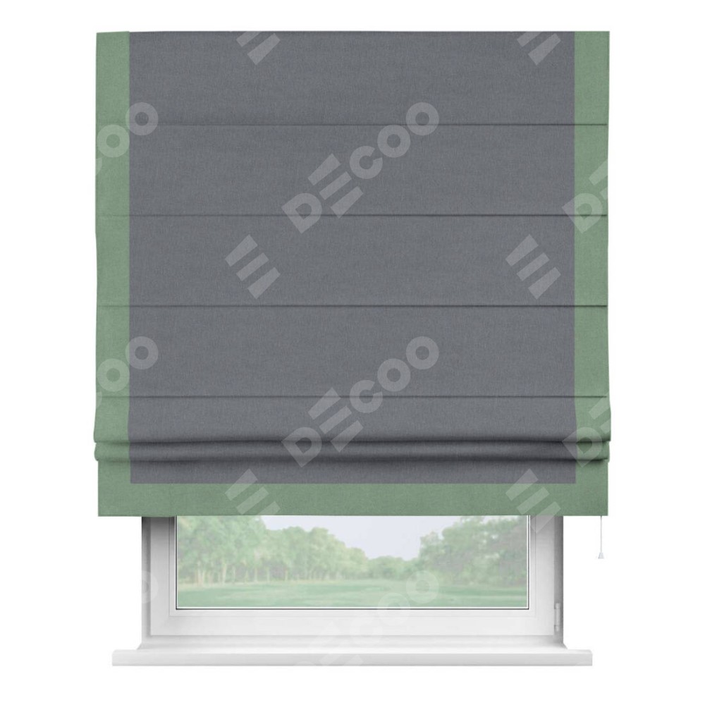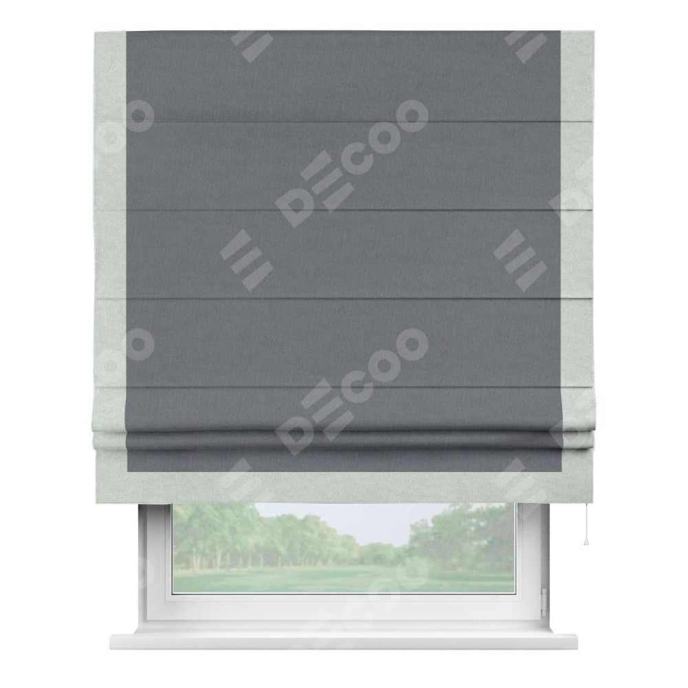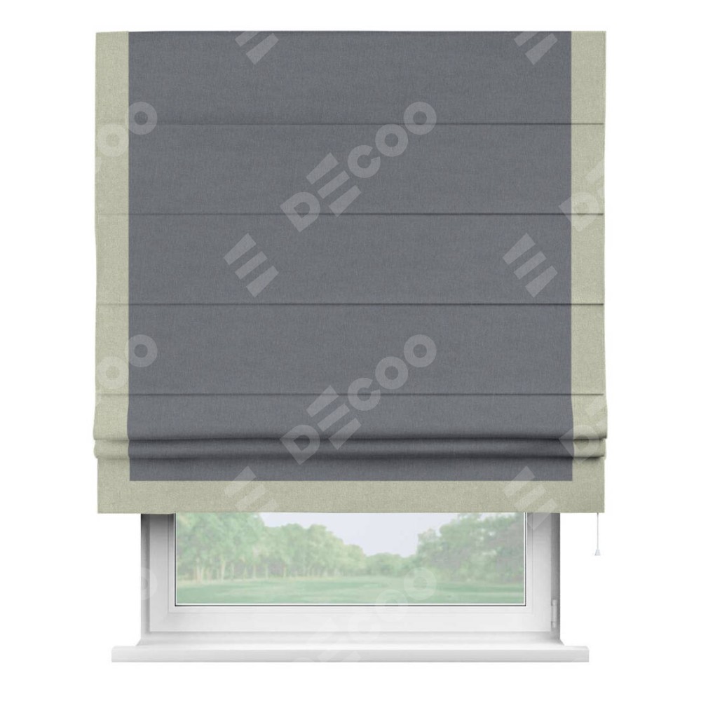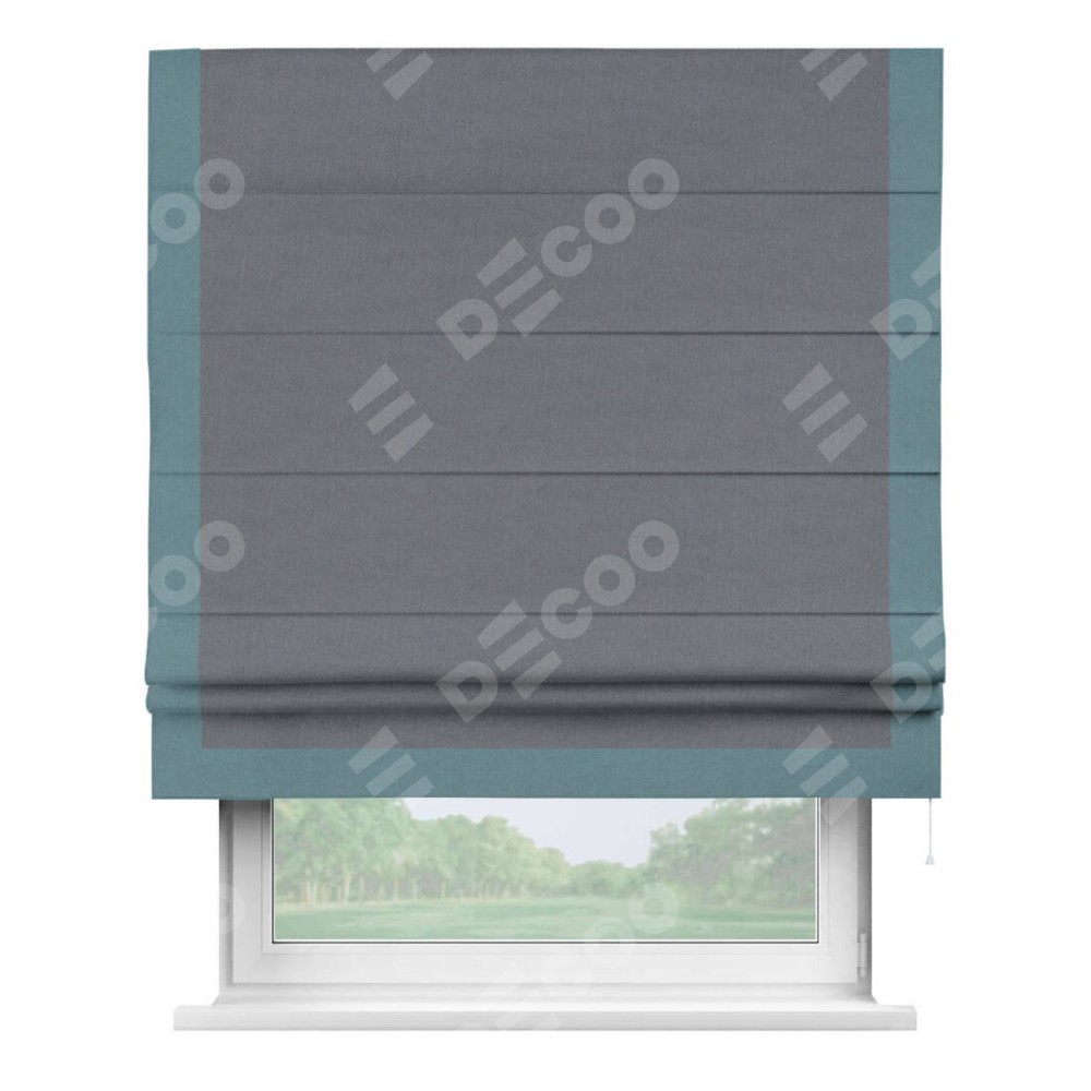 Классическая римская штора производителя «Cortin», пошита из ткани лён блэкаут тёмно-серый, артикул: 139663. Имеет универсальный механизм и подходит для монтажа: на потолок, на стену и в нишу.