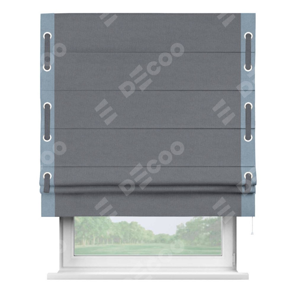Римская штора «Кортин» с кантом Стрим Дуо (люверсы с пояском), для проема, лён блэкаут тёмно-серый