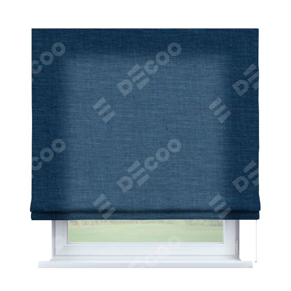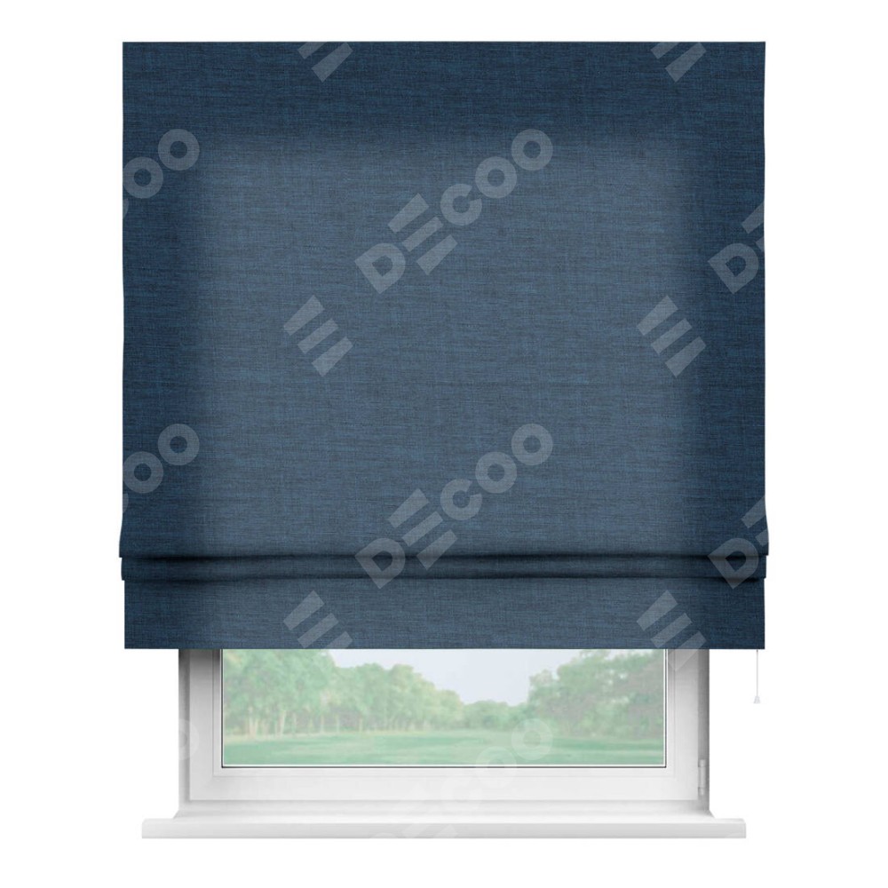 Классическая римская штора производителя «Cortin», пошита из ткани лён синий, артикул: 104496. Имеет универсальный механизм и подходит для монтажа: на потолок, на стену и в нишу.