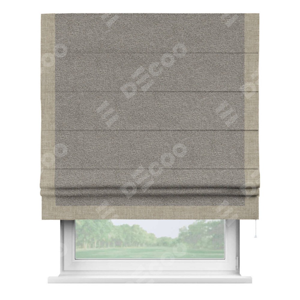 Римская штора «Кортин» для проёма, лён меланж натуральный, с кантом Виктория