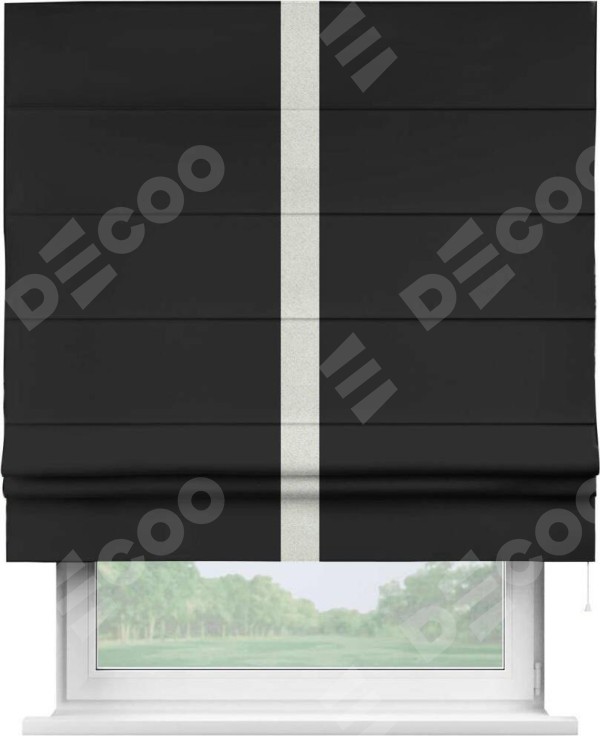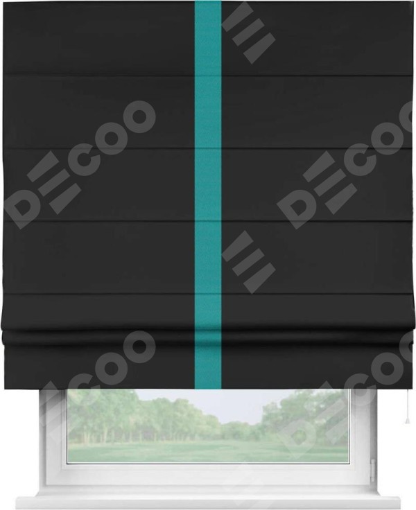 Римская штора «Cortin» для проёма, блэкаут однотонный черный с кантом Хайвэй