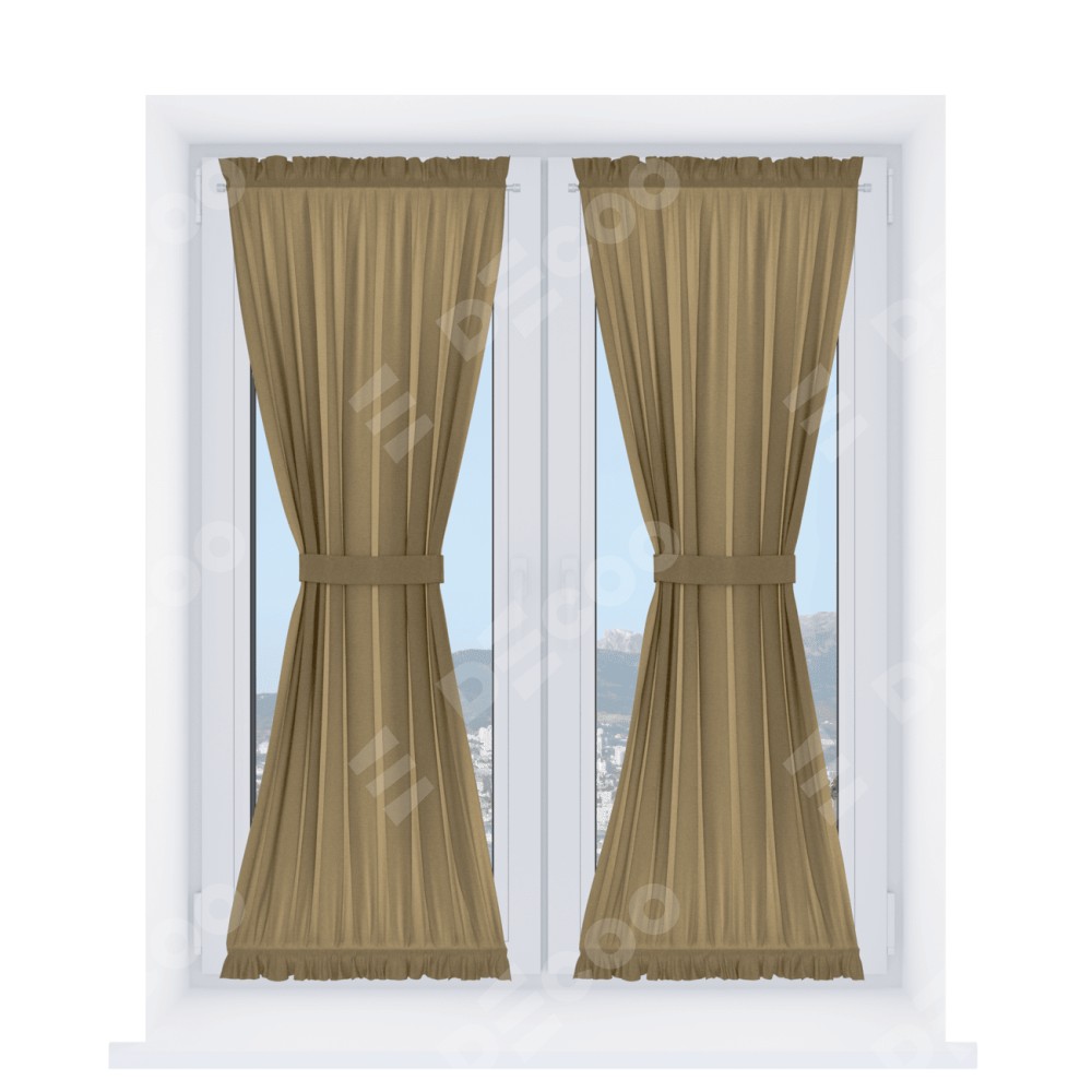 Штора «Песочные часы» производителя «Cortin», используется для створок окон и дверей, пошита из ткани лён димаут оливковый, артикул ткани 16243.
