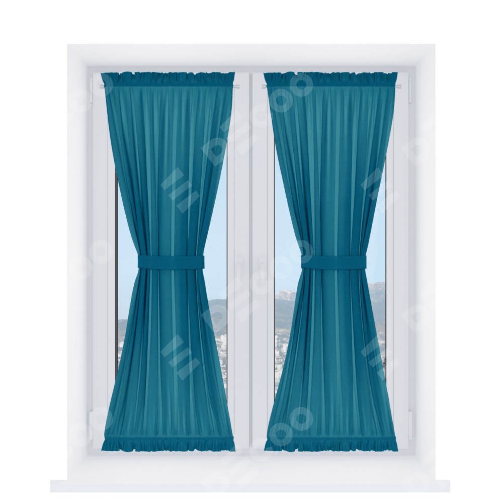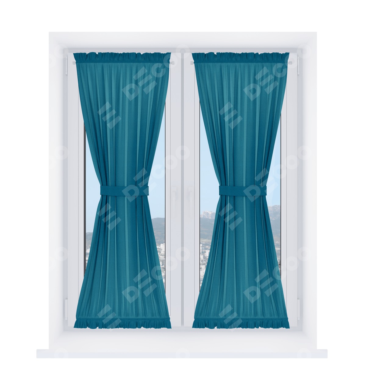 Штора «Песочные часы» производителя «Cortin», используется для створок окон и дверей, пошита из ткани лён димаут светло-синий, артикул ткани 02.