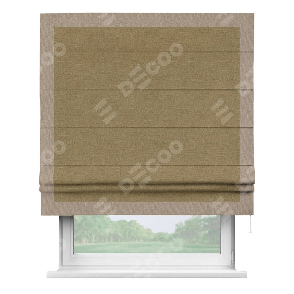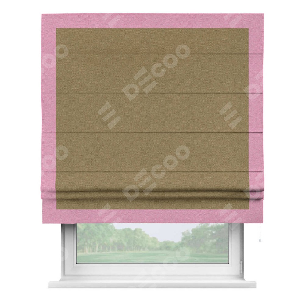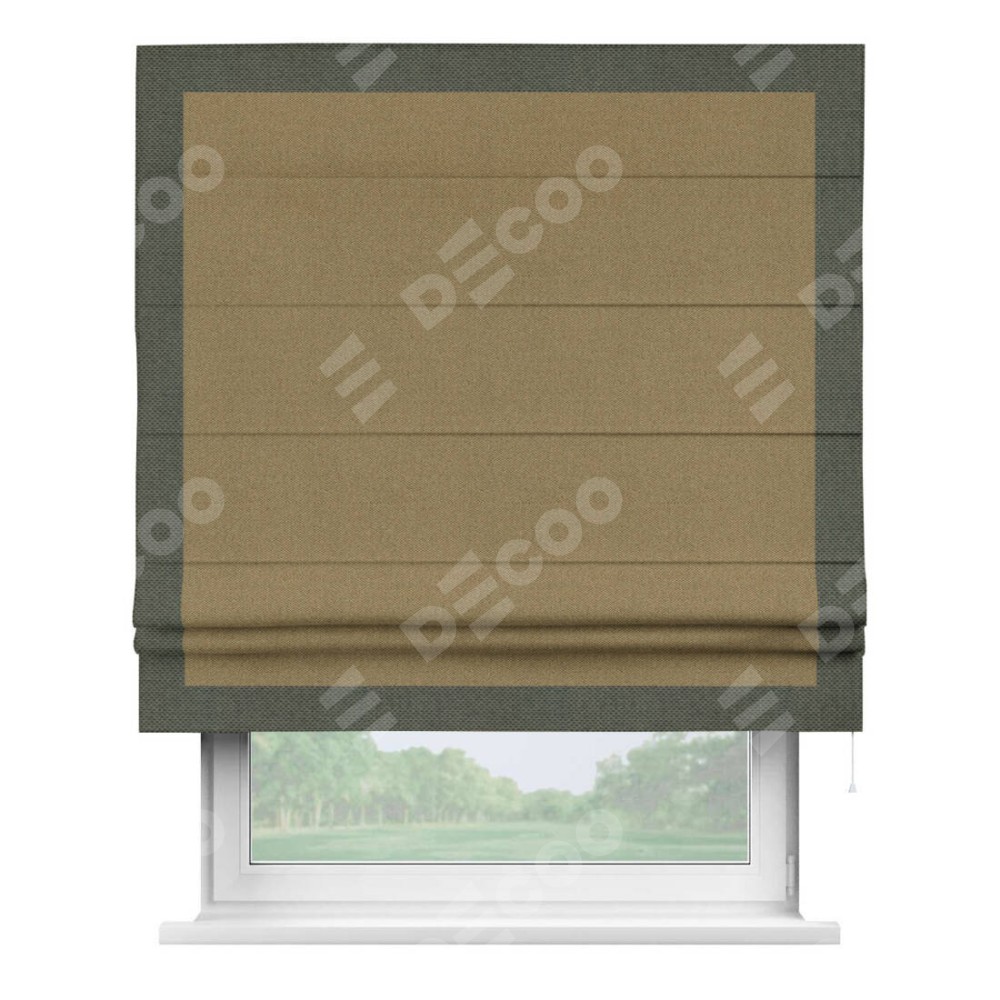 Римская штора «Кортин» с кантом Чесс, для проема, ткань лён димаут, оливковый