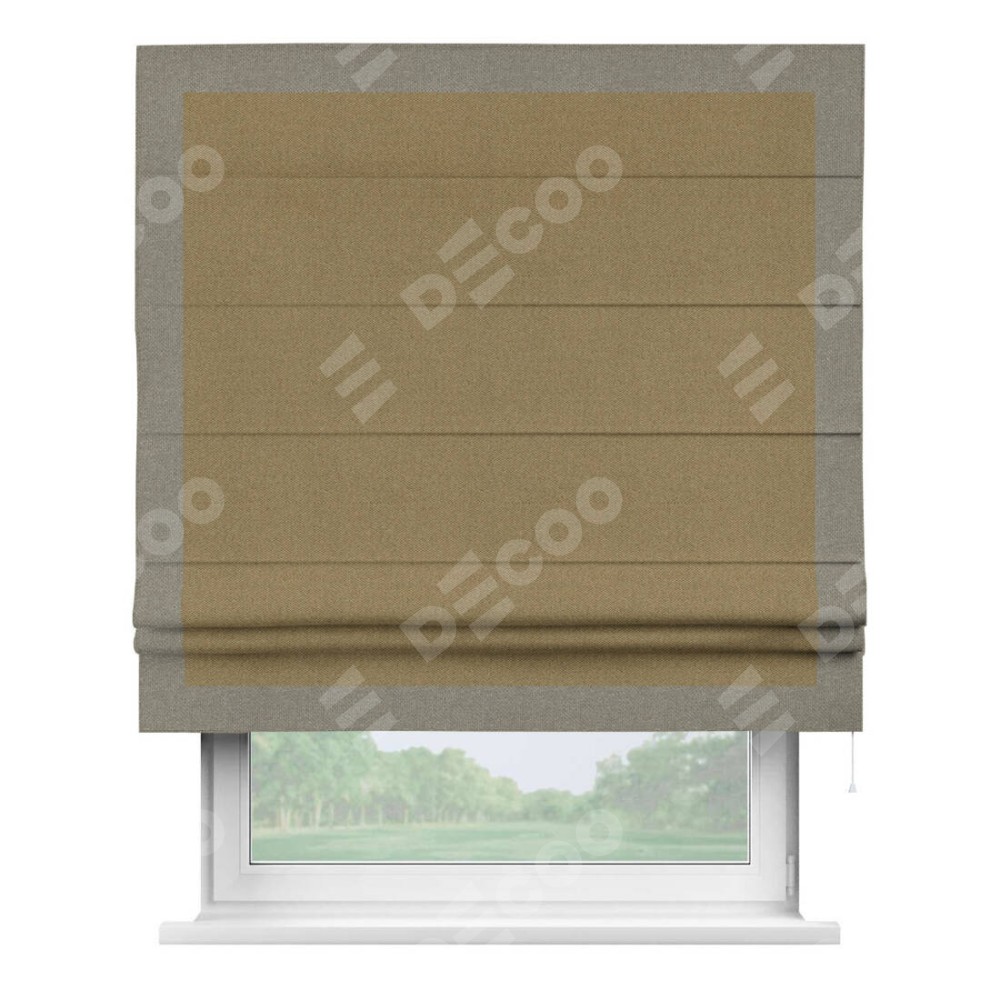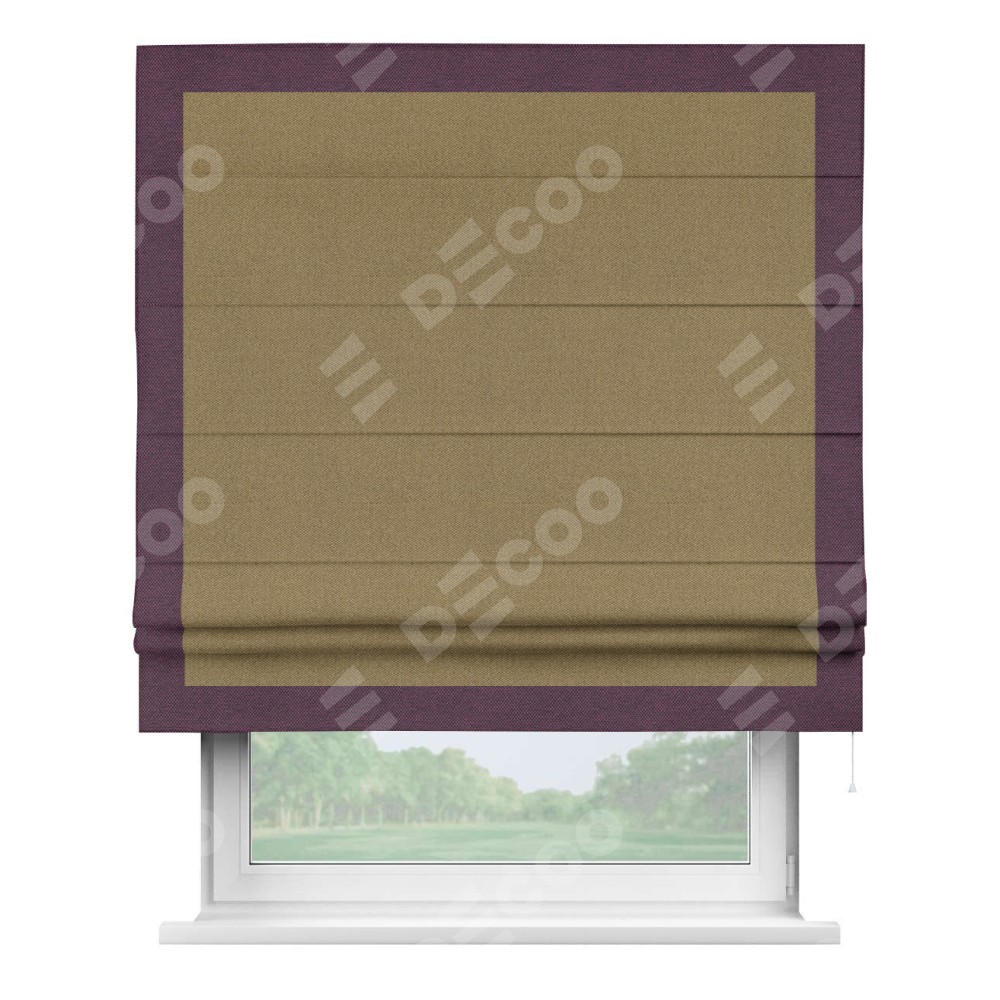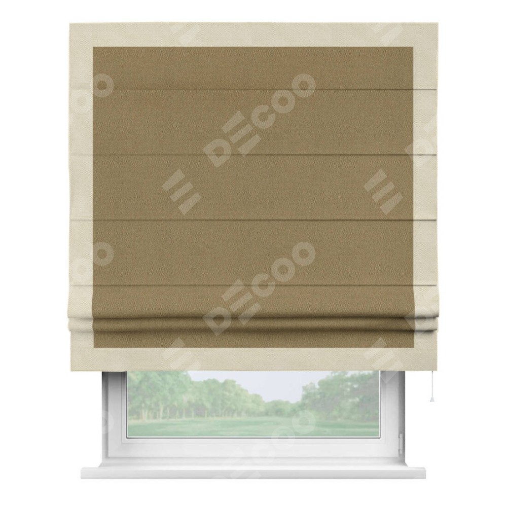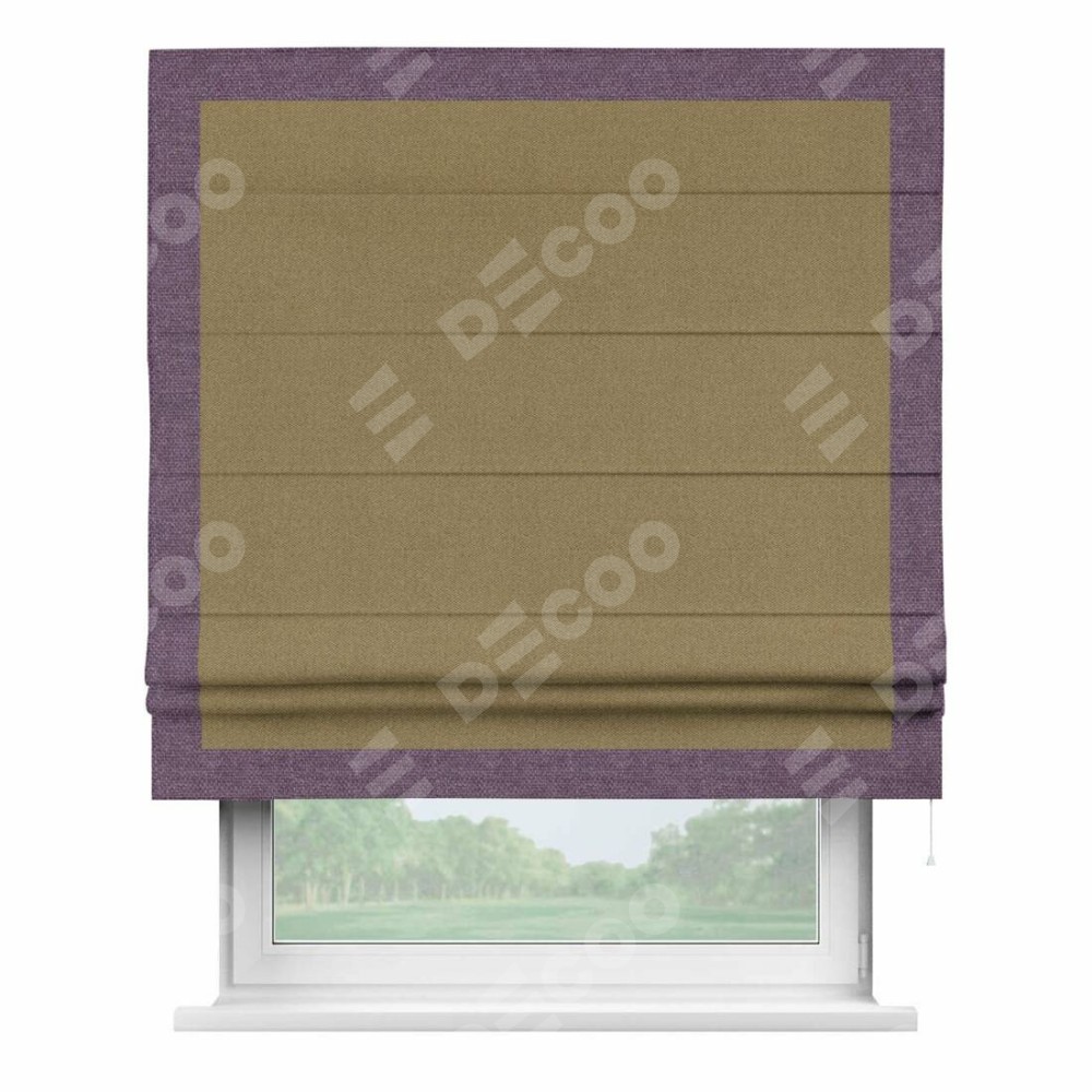 Римская штора «Кортин» с кантом Чесс, для проема, ткань лён димаут, оливковый