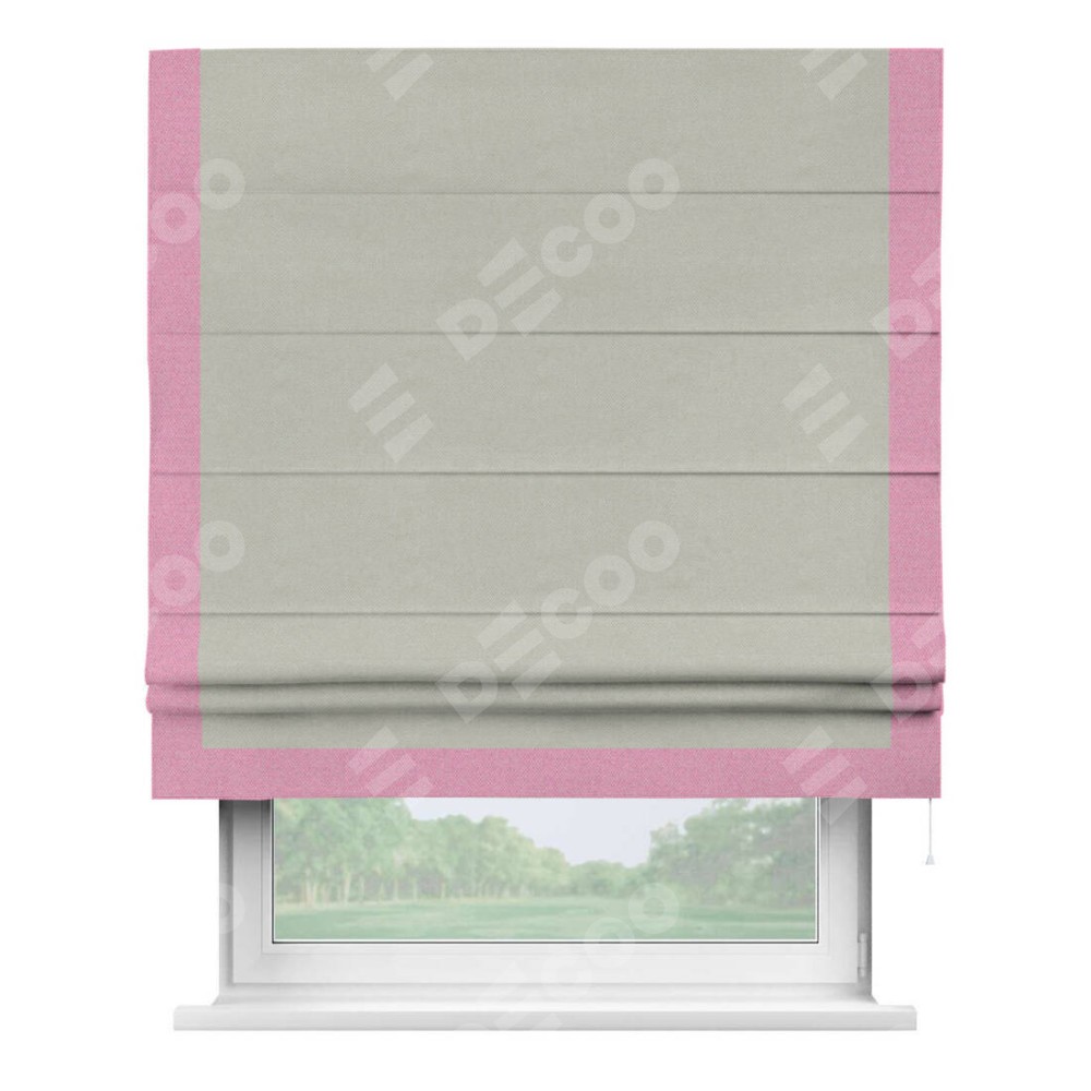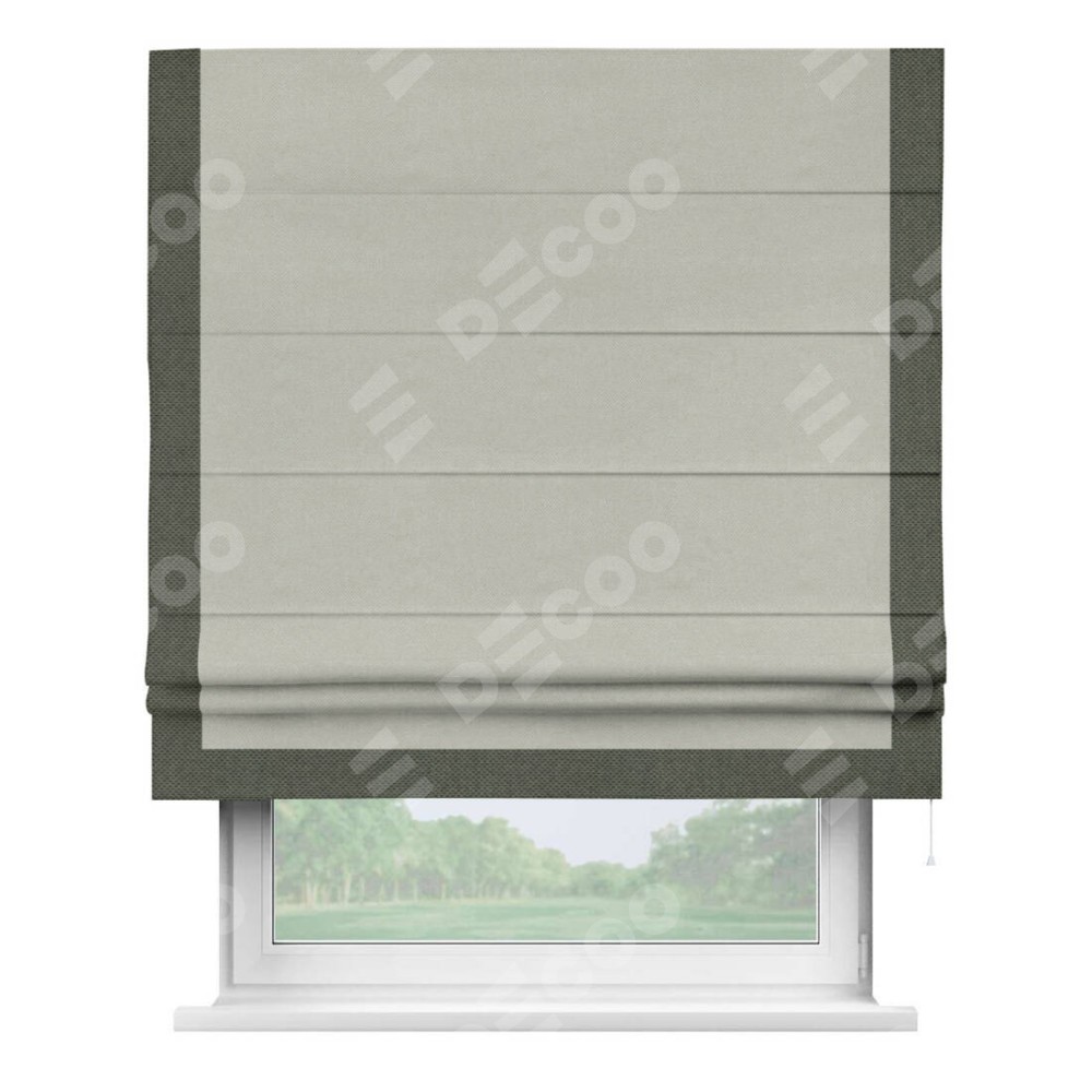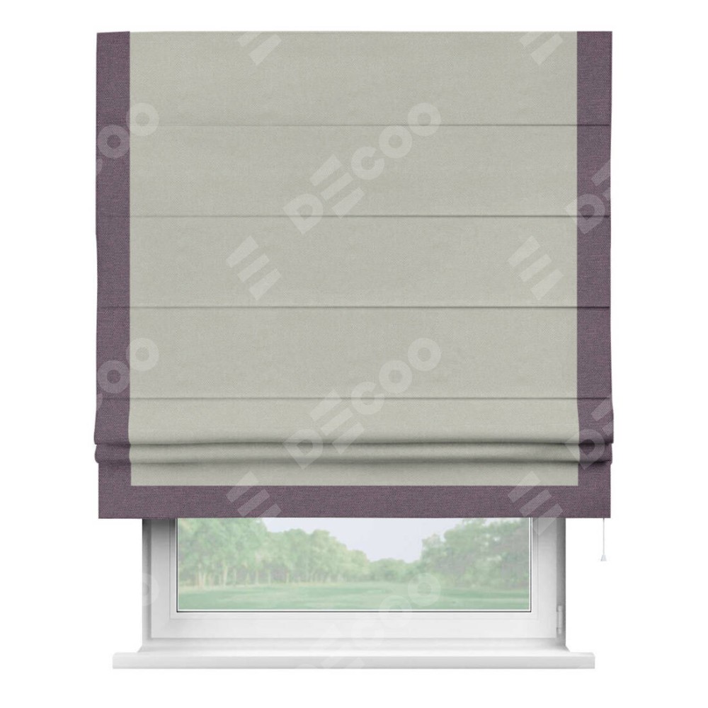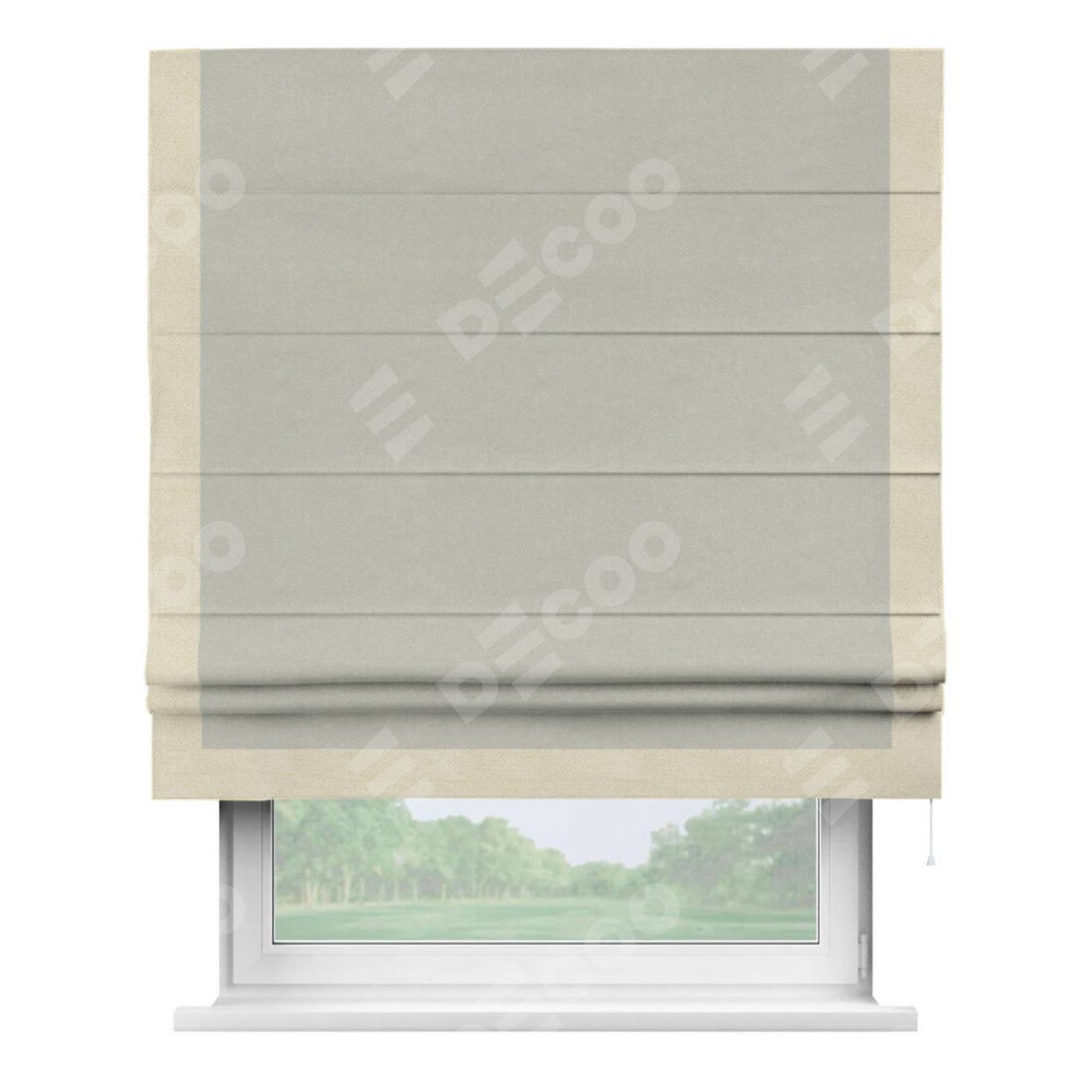 Римская штора «Кортин» с кантом Виктория, для проема, ткань лён димаут, светло-серый