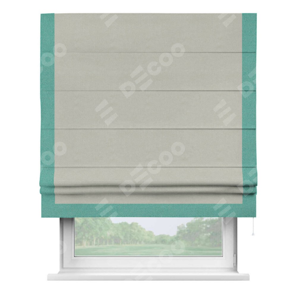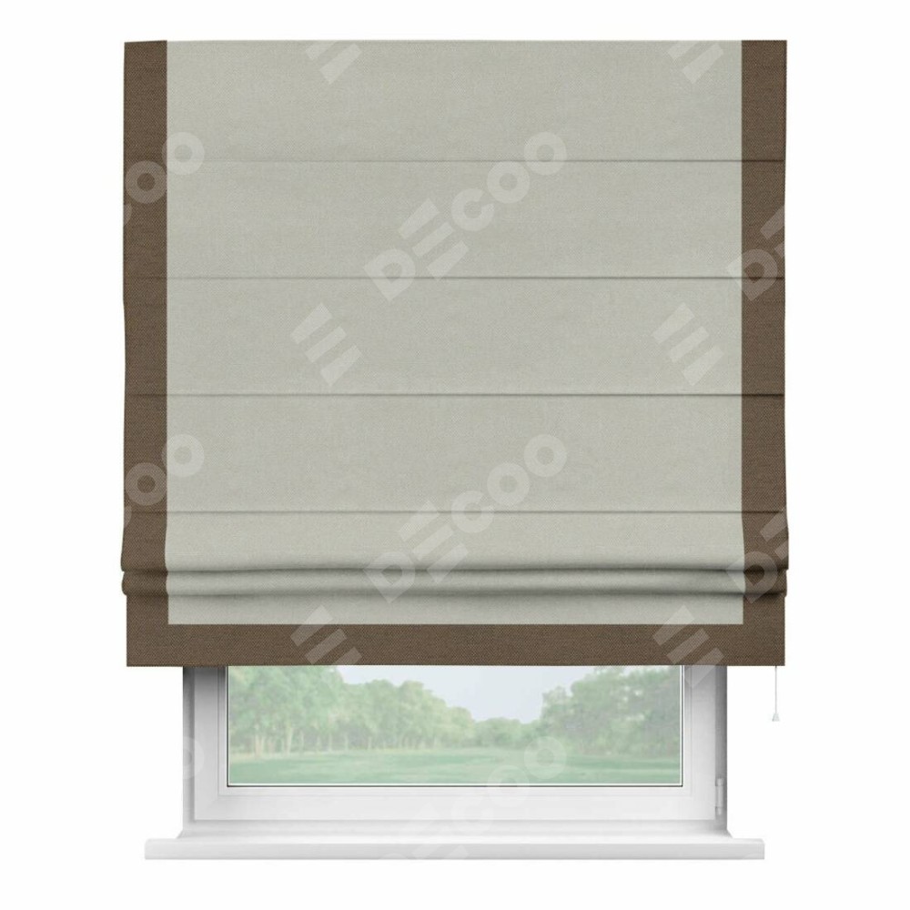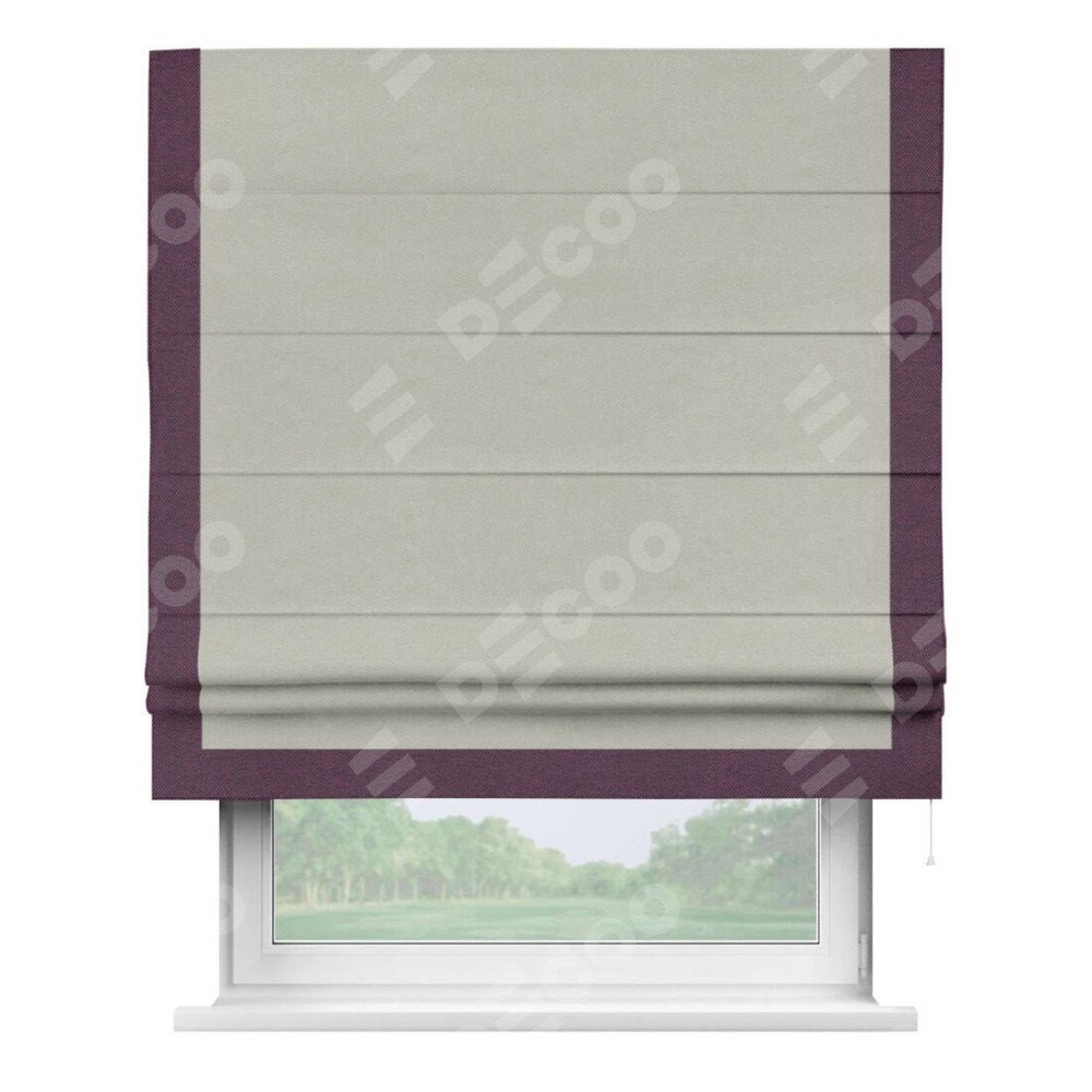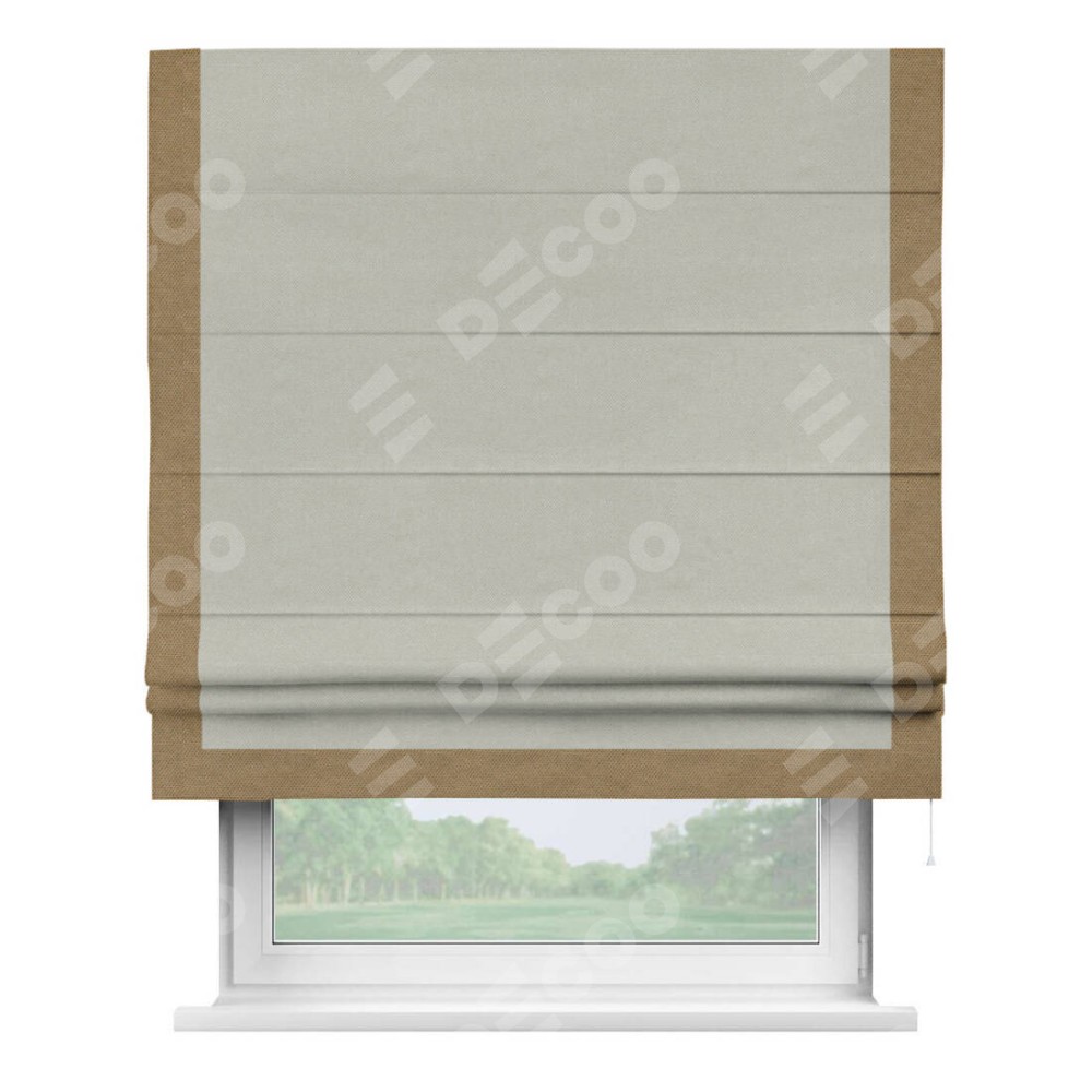 Римская штора «Кортин» с кантом Виктория, для проема, ткань лён димаут, светло-серый