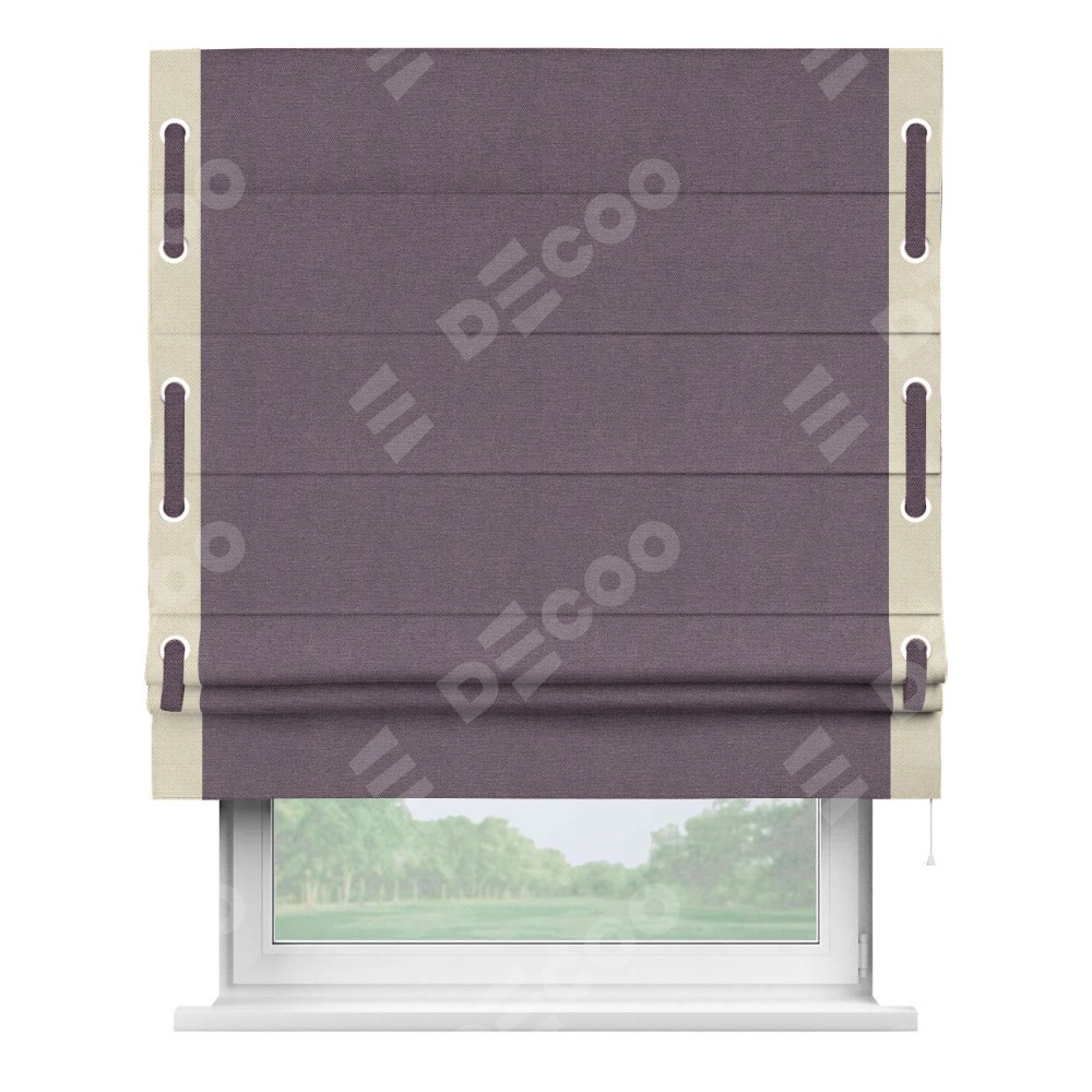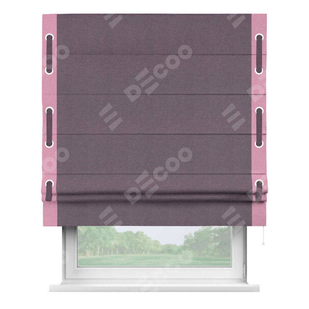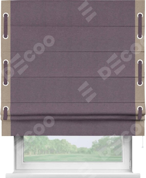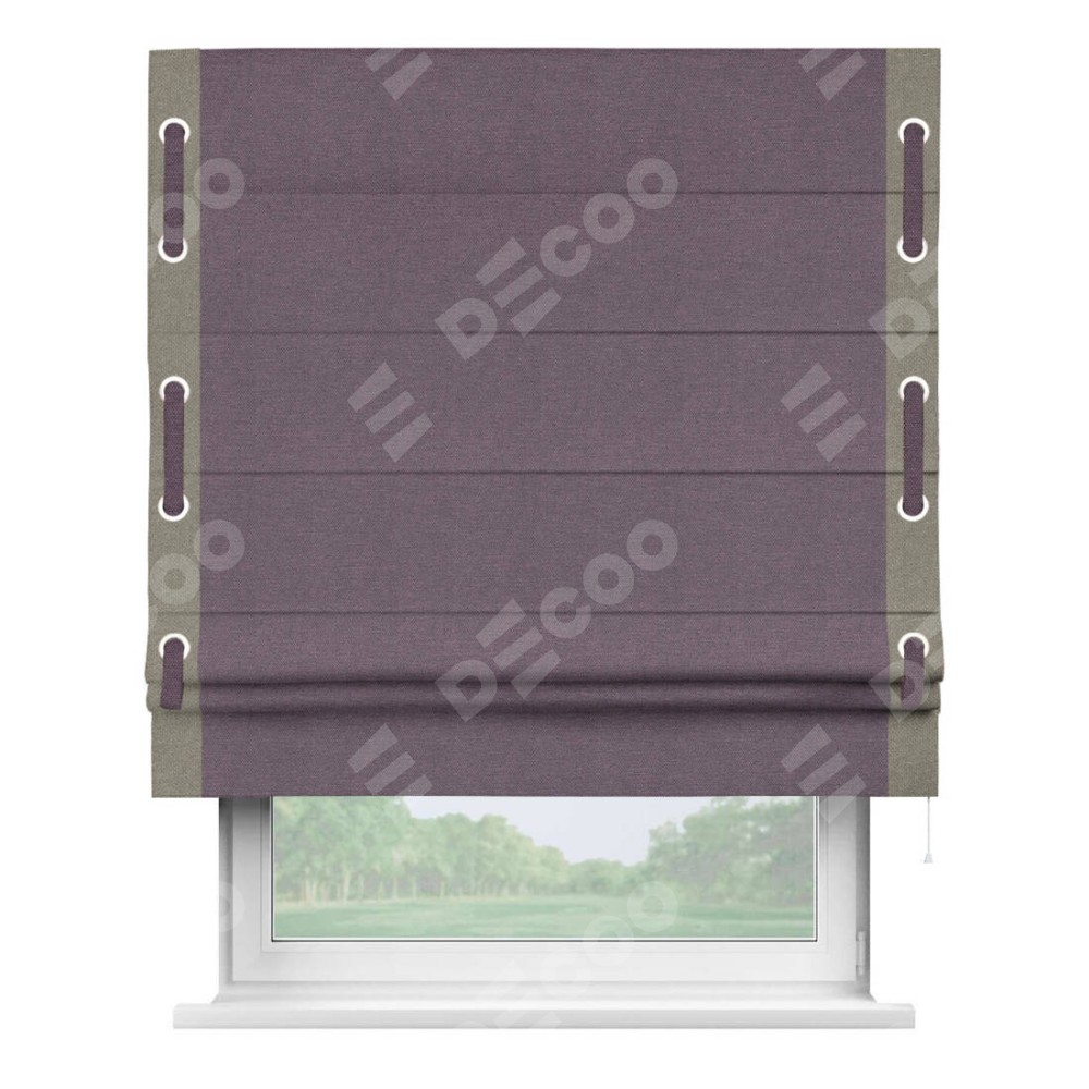 Римская штора «Кортин» с кантом Стрим Дуо (люверсы с пояском), для проема, ткань лён димаут, светло-фиолетовый