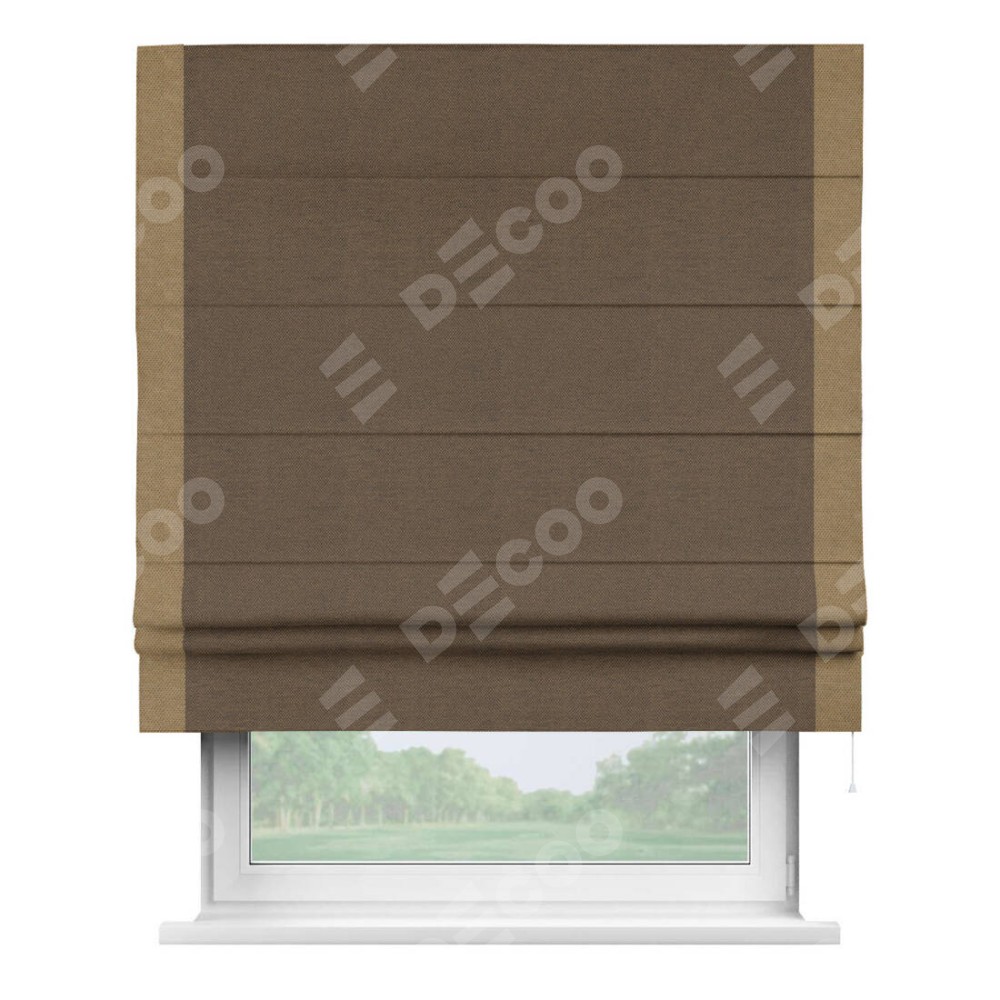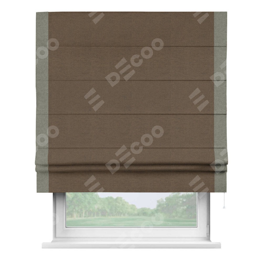 Римская штора «Кортин» с кантом Стрим Дуо, для проема, ткань лён димаут, тёмно-коричневый