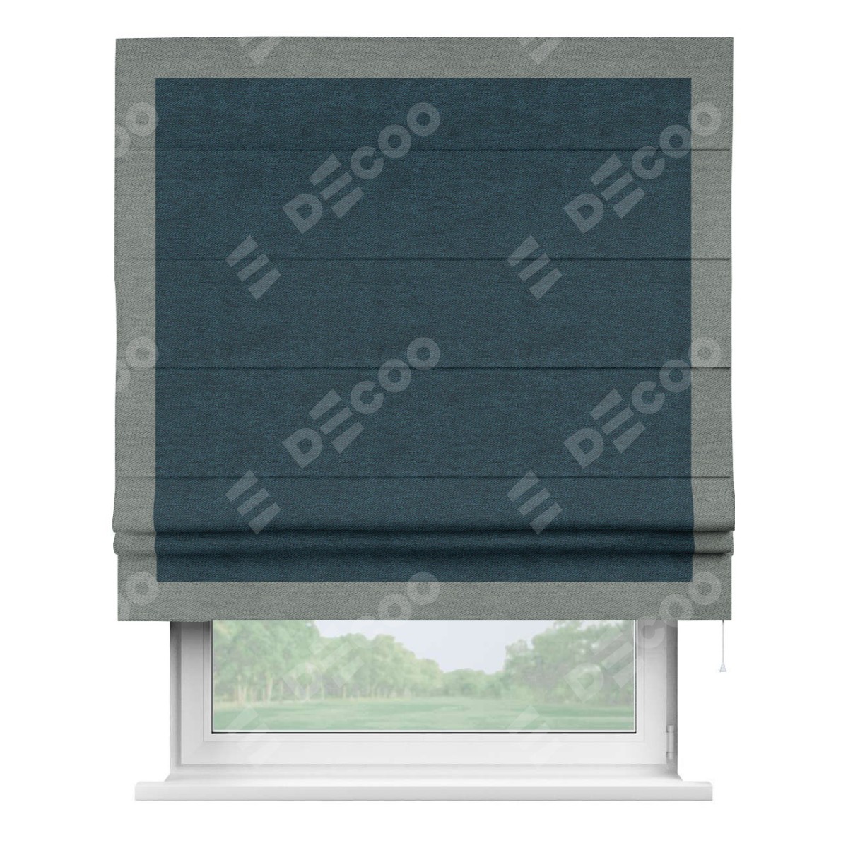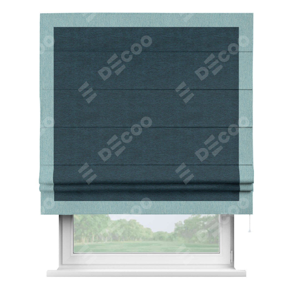 Римская штора производителя «Cortin», используется для проёма, пошита из ткани твид блэкаут глубокий синий, артикул 21590. Отделка шторы кантом «Чесс», ткань для канта используется из твида разной расцветки на выбор. Имеет универсальный механизм и подходит для монтажа: на потолок, на стену и в нишу.