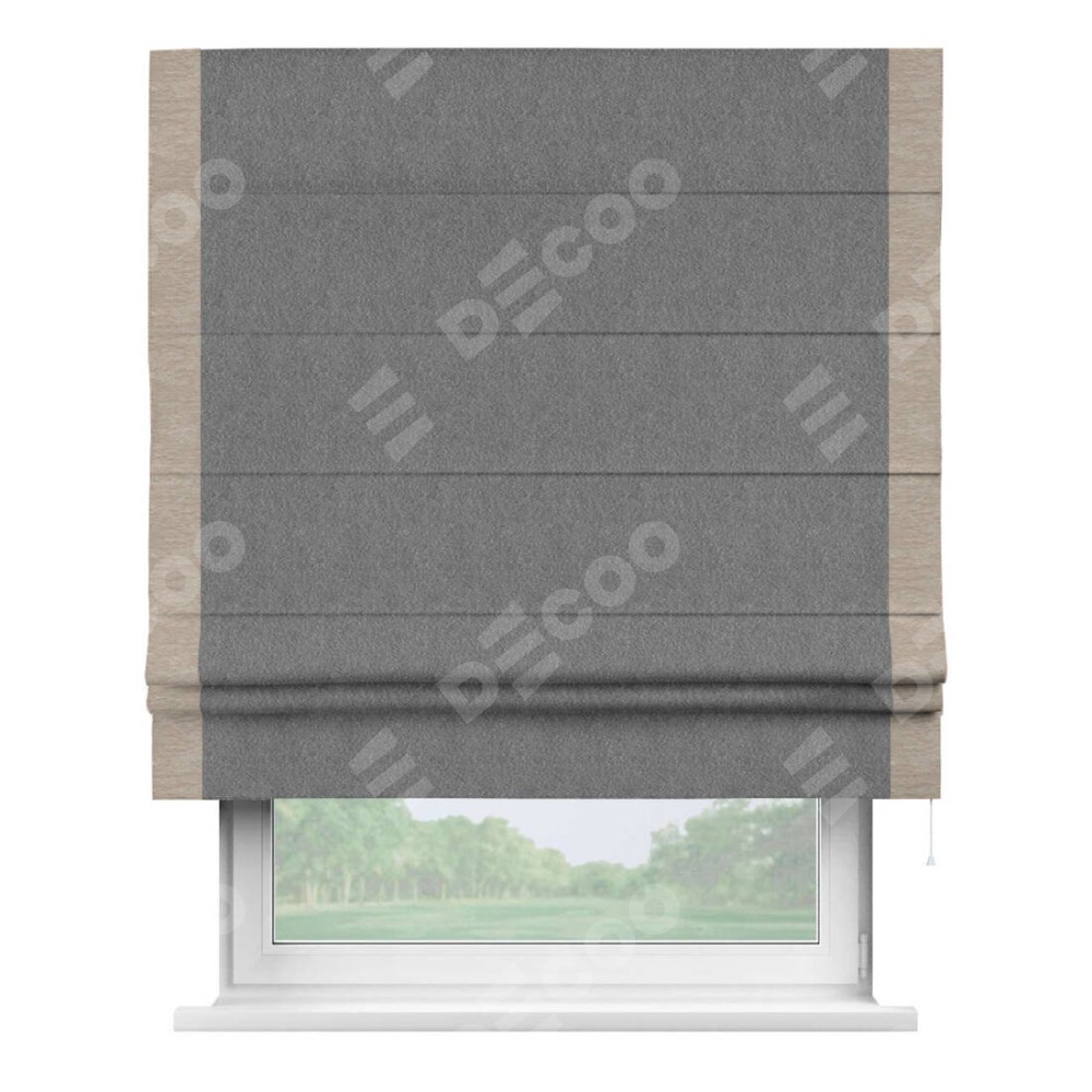Римская штора «Кортин» с кантом Стрим Дуо, для проема, ткань софт однотонный серый