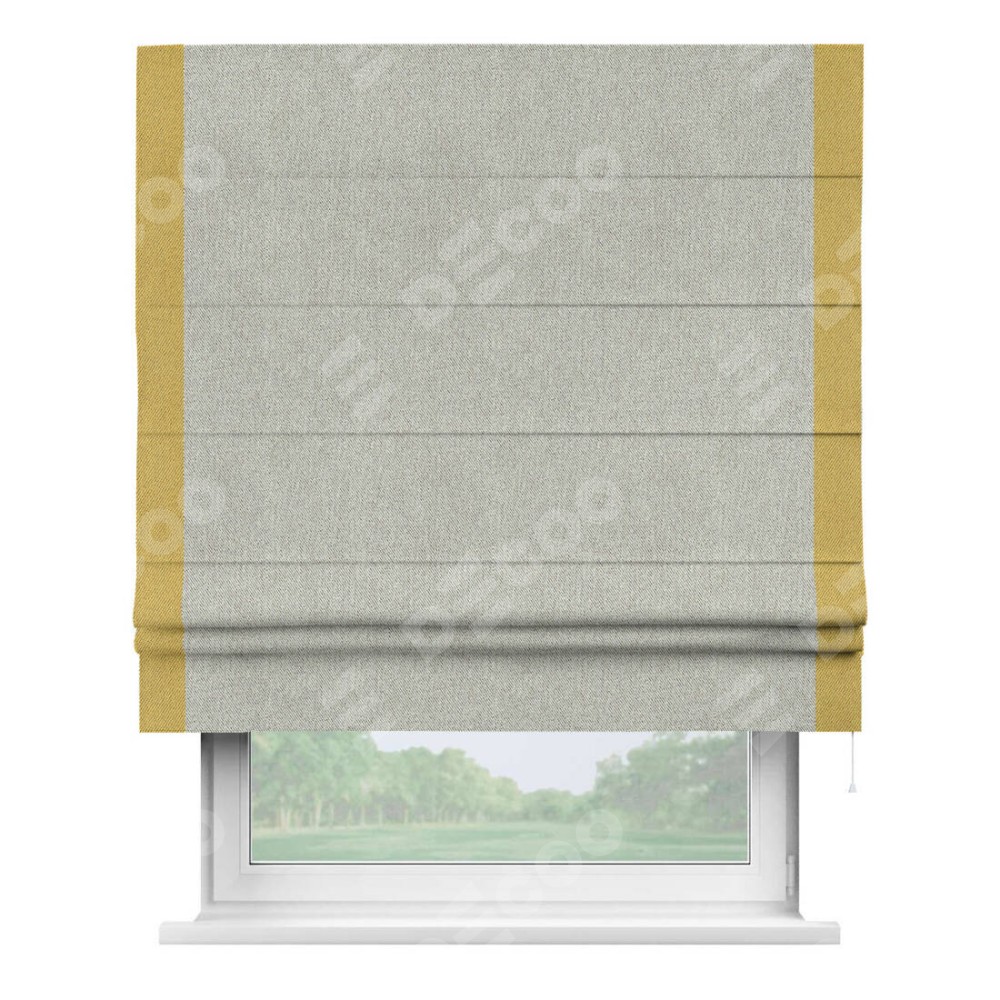 Римская штора производителя «Cortin», используется для проёма, пошита из ткани твид блэкаут коричнево-серый, артикул 21574. Отделка шторы кантом «Стрим Дуо», ткань для канта используется из твида разной расцветки на выбор. Имеет универсальный механизм и подходит для монтажа: на потолок, на стену и в нишу.