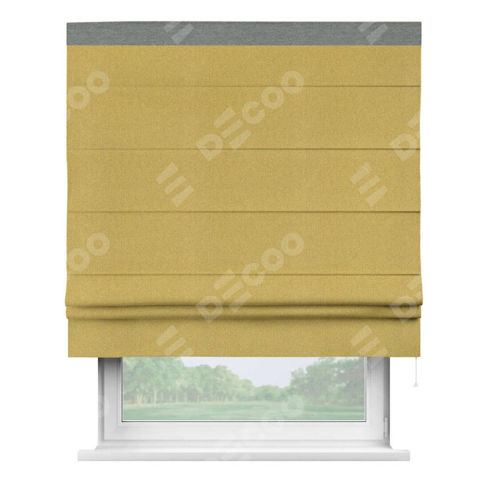 Римская штора производителя «Cortin», используется для проёма, пошита из ткани твид блэкаут пыльная горчица, артикул 21588. Отделка шторы кантом «Кинг», ткань для канта используется из твида разной расцветки на выбор. Имеет универсальный механизм и подходит для монтажа: на потолок, на стену и в нишу.