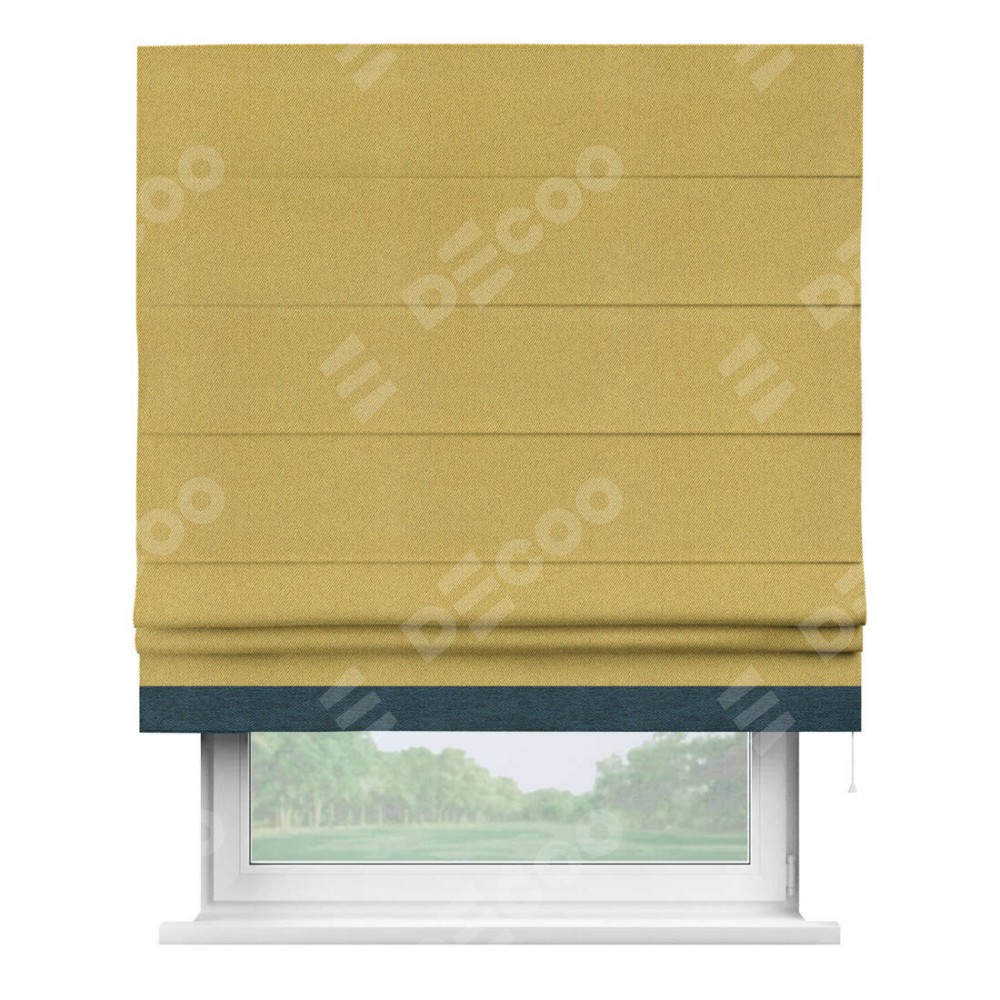 Римская штора производителя «Cortin», используется для проёма, пошита из ткани твид блэкаут пыльная горчица, артикул 21588. Отделка шторы кантом «Джестер», ткань для канта используется из твида разной расцветки на выбор. Имеет универсальный механизм и подходит для монтажа: на потолок, на стену и в нишу.