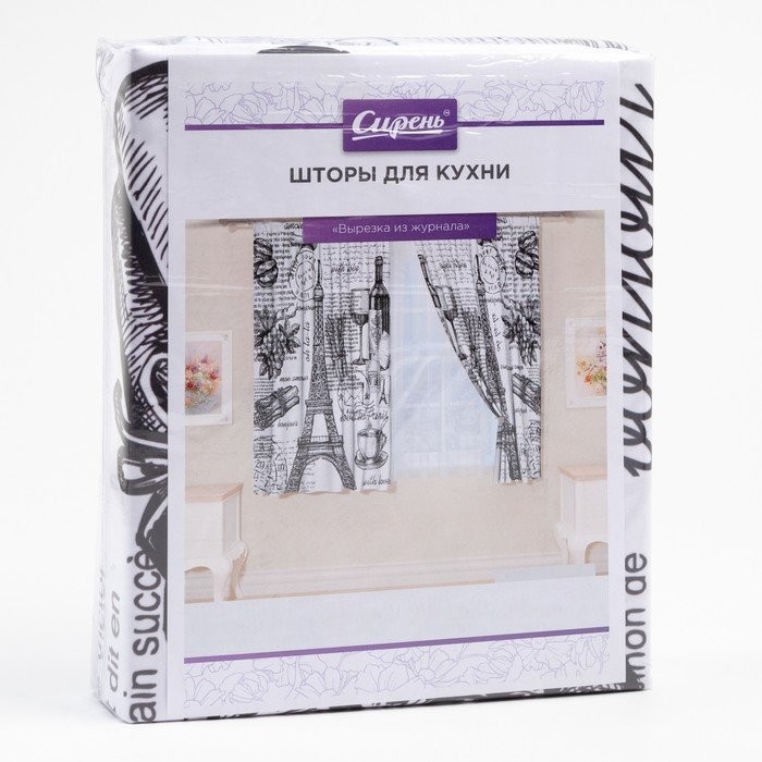 Фотошторы кухонные «Вырезка из журнала», 145×180 см, 2 шт., габардин, п/э