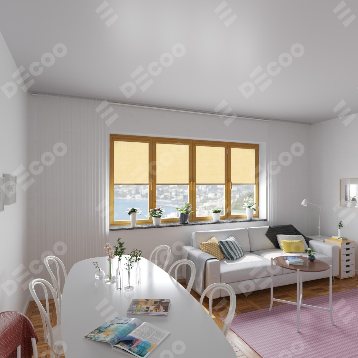 Рулонная штора Уни 2 Тэфи 04 отлично подойдёт для интерьера: для беседки, детская и для дома.
