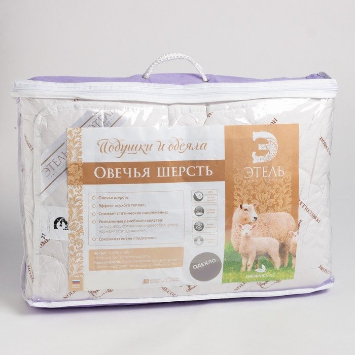 Нежное, тёплое и красивое одеяло «Этель» Овечья шерсть подарит вам только добрые сновидения и по-настоящему прекрасное утро.