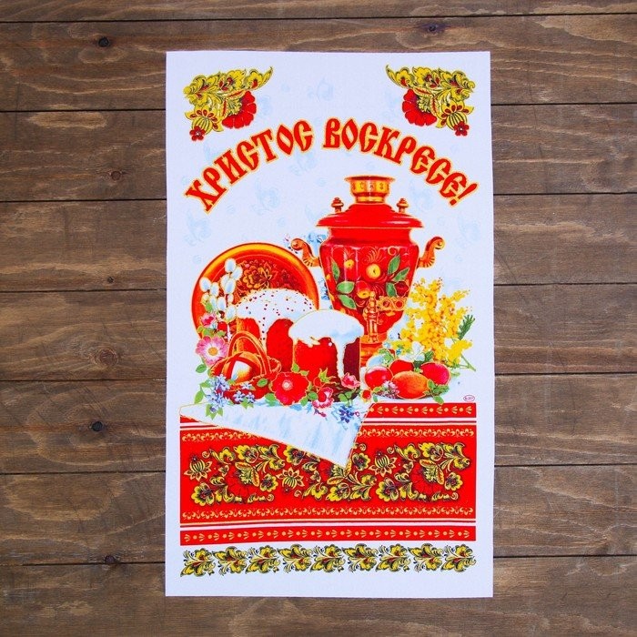 Рушник — один из самых древних и символичных предметов, дошедших до наших дней и не потерявших своего назначения. Пасхальный рушник (или салфетка) появился с принятием христианства на Руси. На нём изображены красивые православные храмы, религиозная символика и надписи «Христос Воскрес».