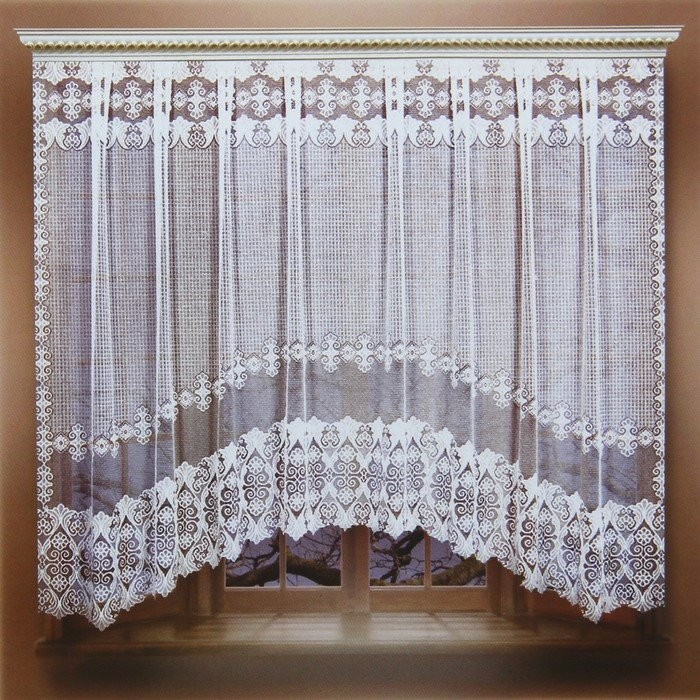 Тюль кухонная со шторной лентой, 285×165 см, белый, 100% п/э сделает внешний вид обеденной зоны полным и законченным. Изящное оформление в виде причудливых узоров подчеркнёт ваш изысканный стиль и утончённый вкус.
