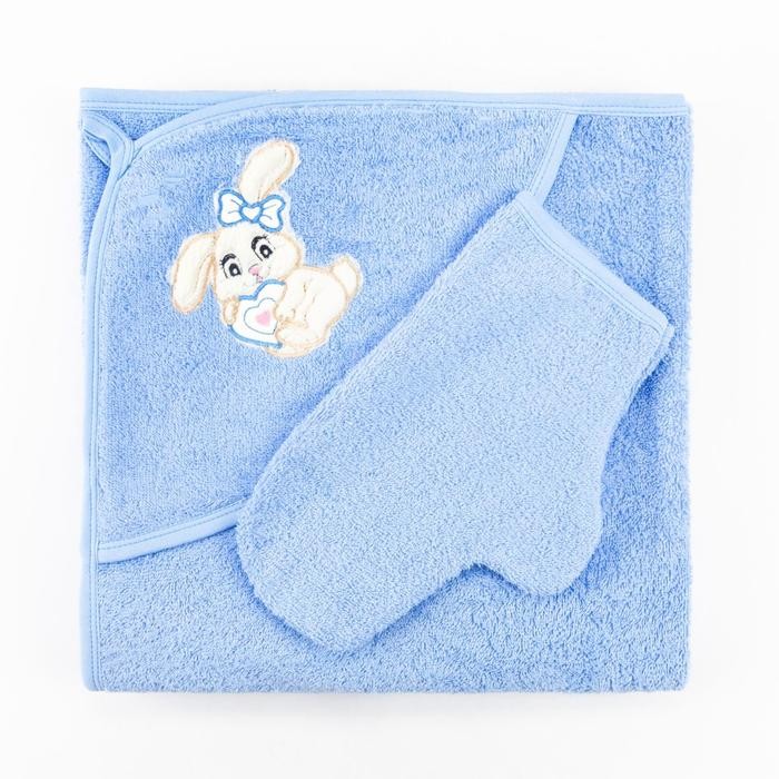 Набор для купания (полотенце-уголок, рукавица), размер 100×110 см, цвет голубой (арт. К24)