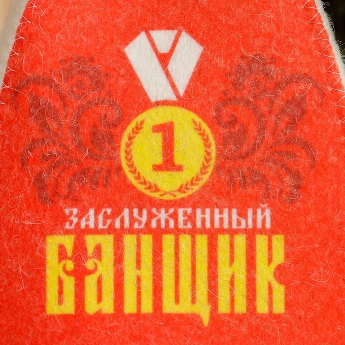 Шапка для бани с цветным клином «Заслуженный банщик»