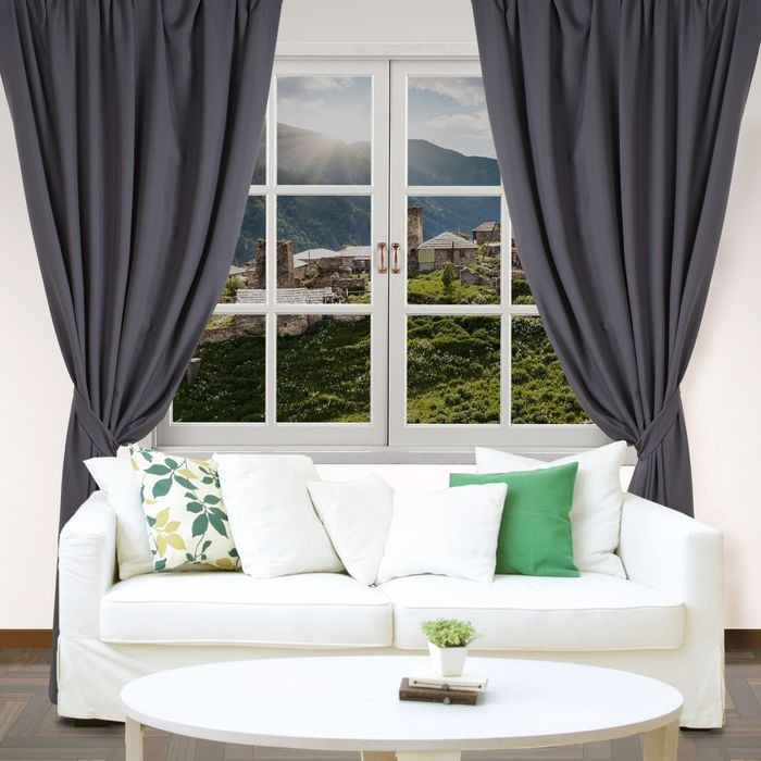 Портьерная штора пошита из жатой ткани — крэш. Этот материал: