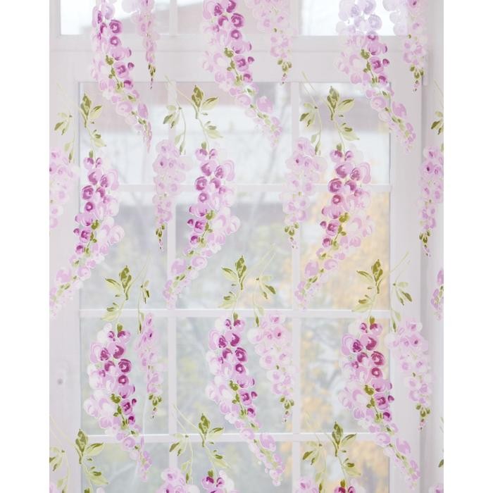 Тюль «Этель» Виноградная лоза (лиловый) без утяжелителя, ширина 135 см, высота 270 см