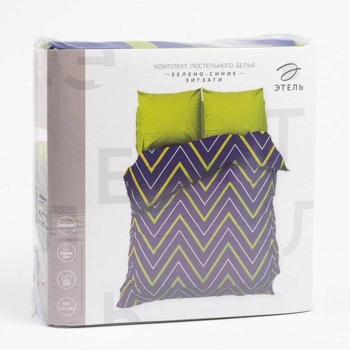 Постельное бельё Этель евро «Зелёно-синие зигзаги» 200×217, 240*220, 70×70−2 шт