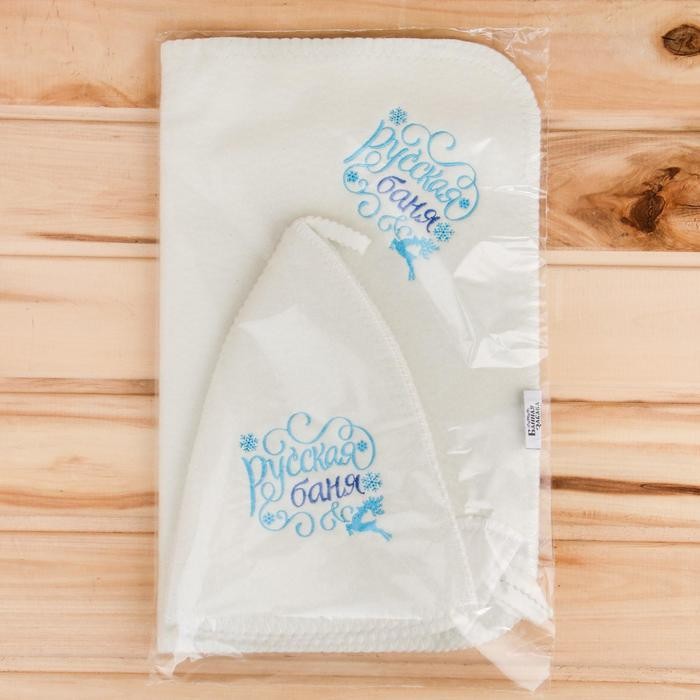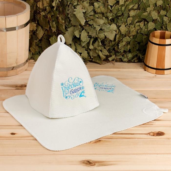 Набор банный: шапка и коврик «Русская баня» в пакете