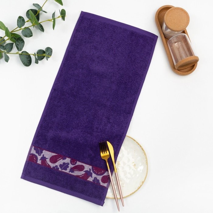 Полотенце махровое жаккардовое 30×60 см, баклажан, хлопок 100%, 340 г/м2