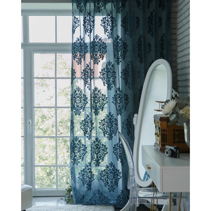 Тюль сетка с бархатом «Этель» 170×265 см Ренессанс Лазурный, 100% п/э