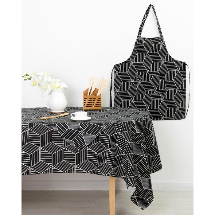 Фартук Доляна 60х70см, Тренд черн, 100%пэ, рогожка 200 гр/м