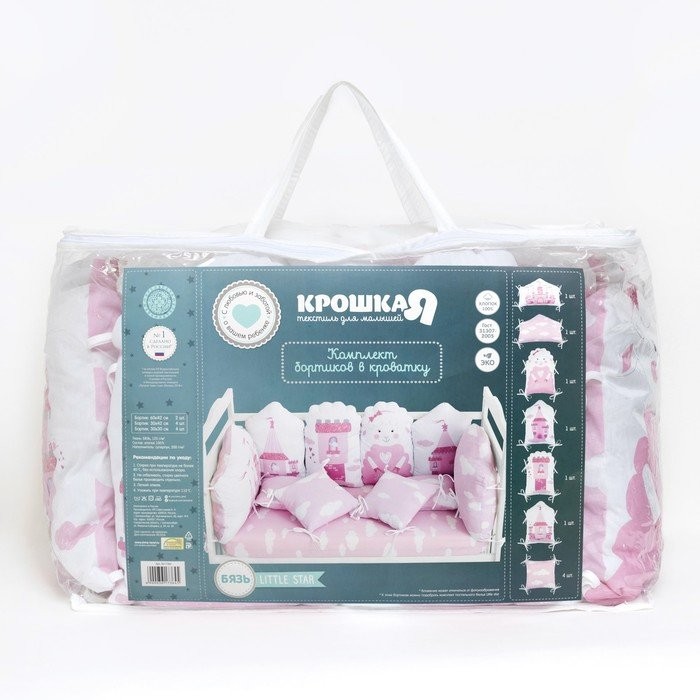 Бортики в кроватку Крошка Я «Little star» (60х42см- 2шт, 30х42см- 4шт, 30х30см- 4шт), 100% хлопок