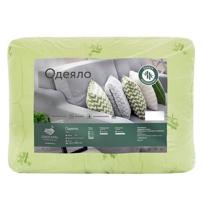Чехол состоит из 100%-го полиэстера. Состав наполнителя: бамбуковое волокно 10%, полиэфирное волокно 90%.