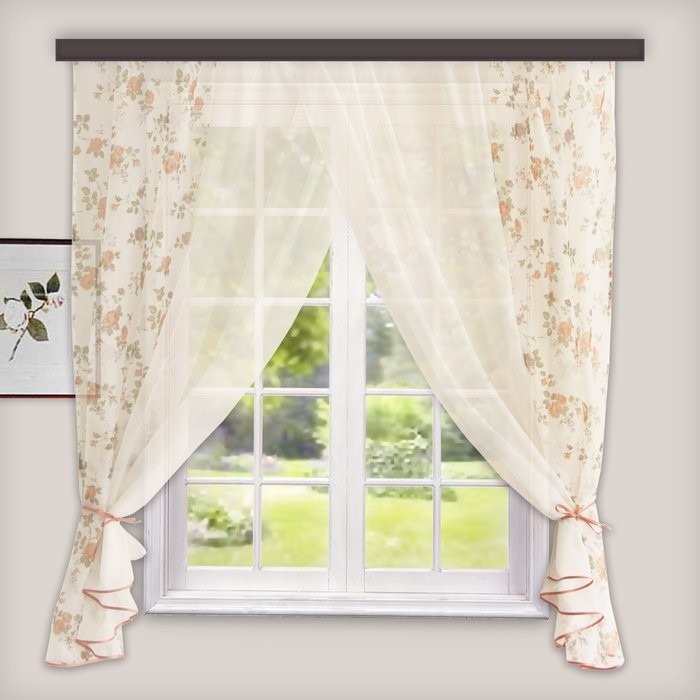 Комплект штор для кухни «Акварель», 280×160 см, цвет персиковый