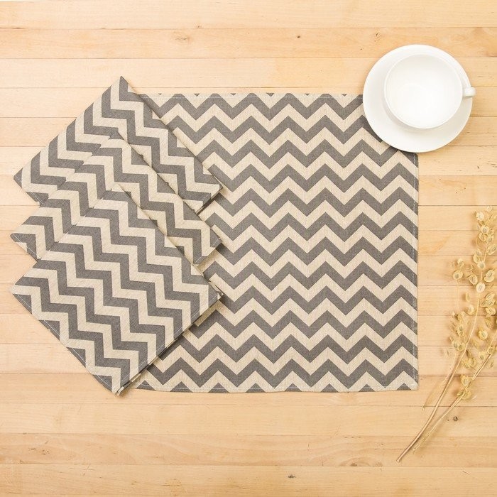 Набор салфеток Доляна 40х40см 4шт, Зигзаг сер, 100%пэ, рогожка 200 гр/м