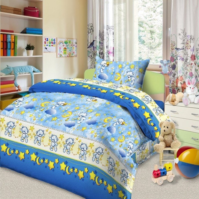 Детское постельное бельё «Сонный мишка» 110×147, 110×150, 40×60 — 1 шт., бязь