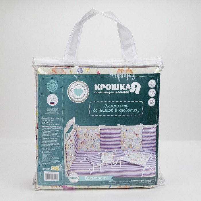 Бортики в кроватку Крошка Я «Единороги» (32×32 см — 12 шт.), бязь/синтепон